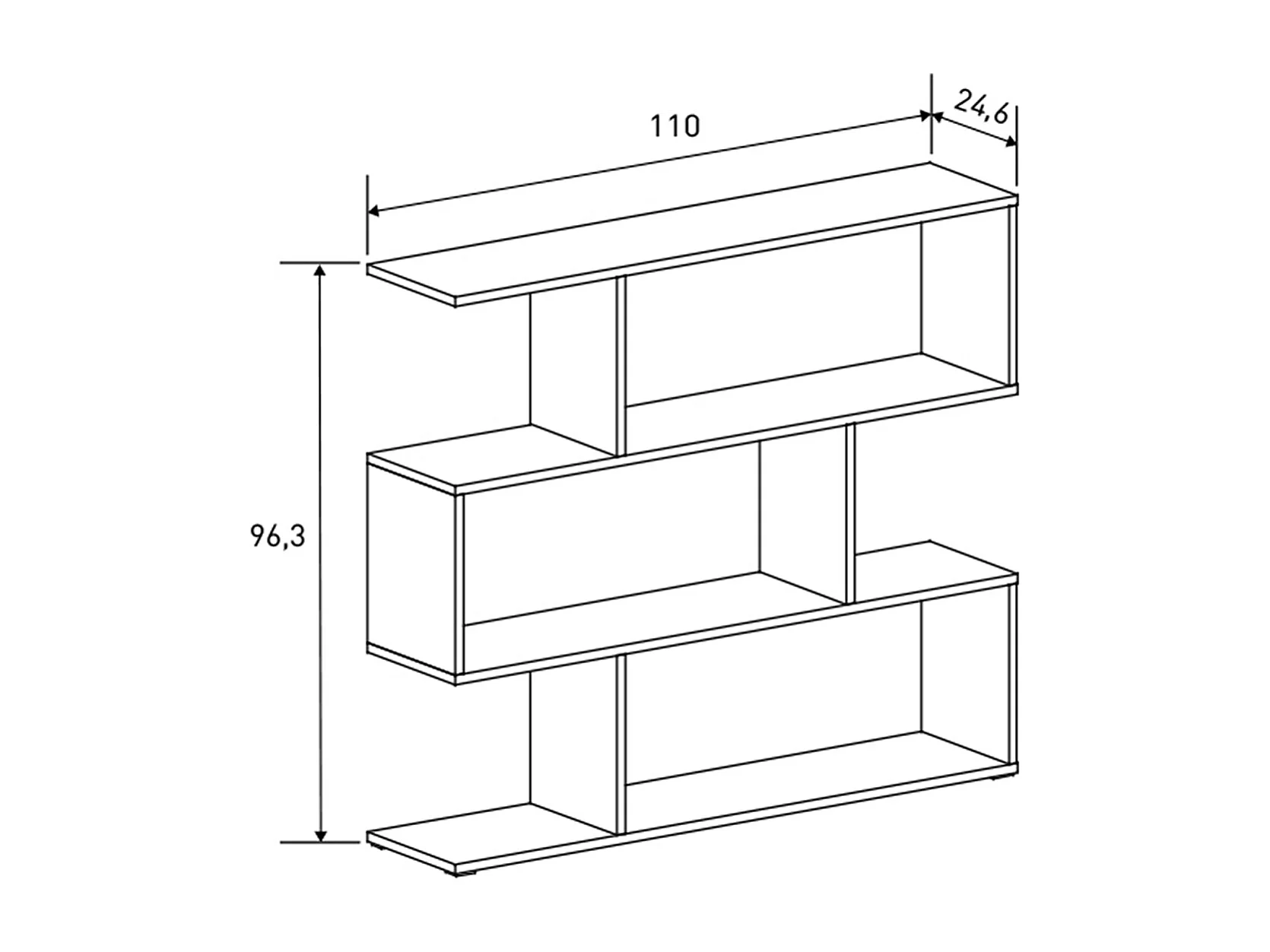 Etagère asymétrique basse, meuble étagère basse coloris beige - Longueur 110 x profondeur 24,60 x hauteur 96,3 cm