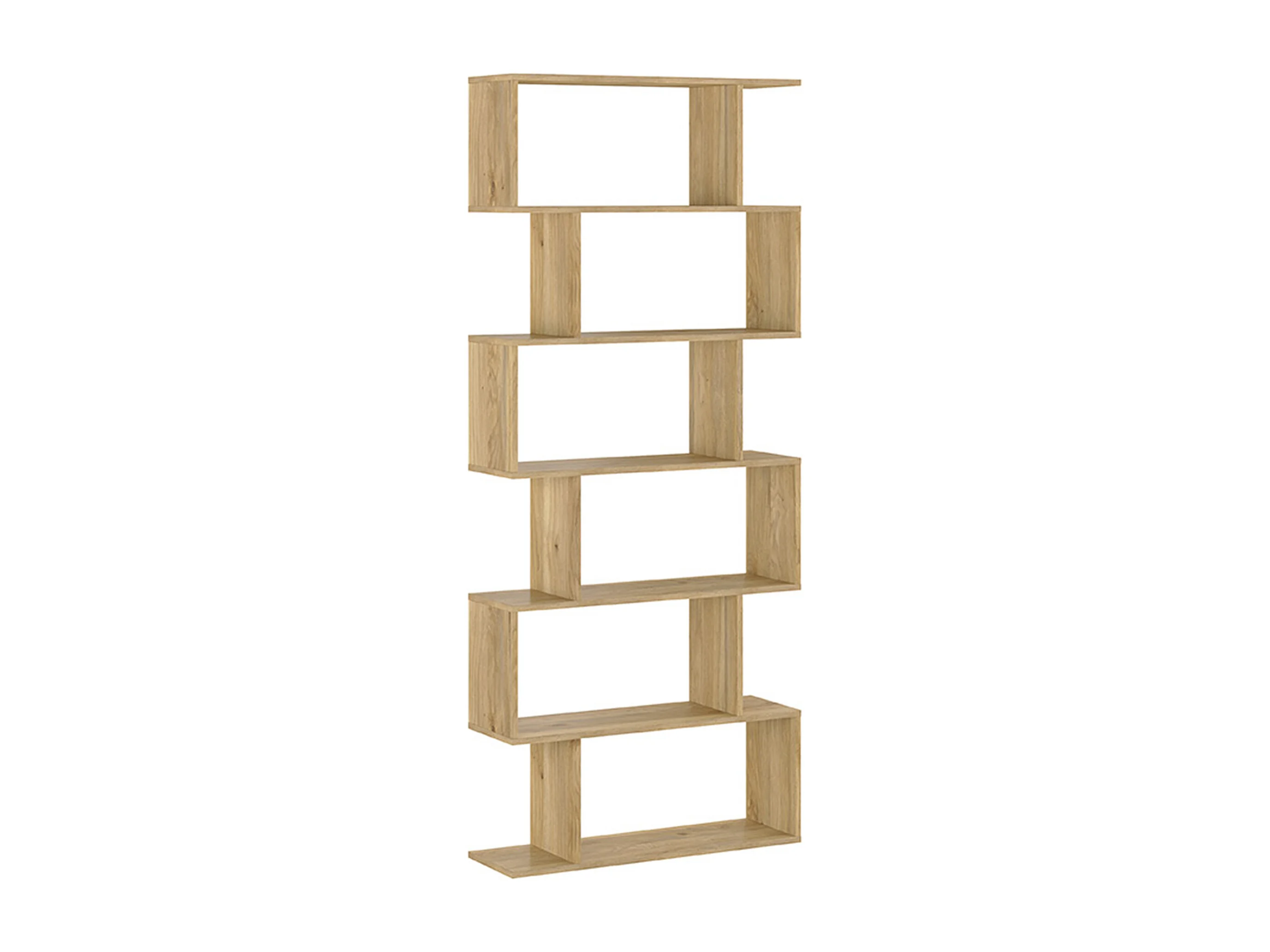 Etagère asymétrique haute, meuble étagère coloris chêne Mauvella - Longueur 80 x profondeur 24,60 x hauteur 191 cm