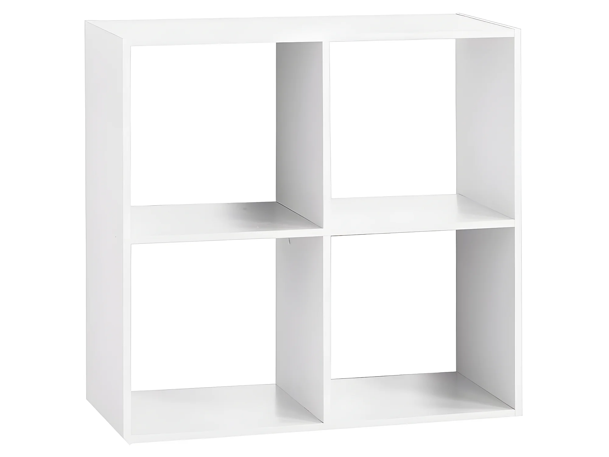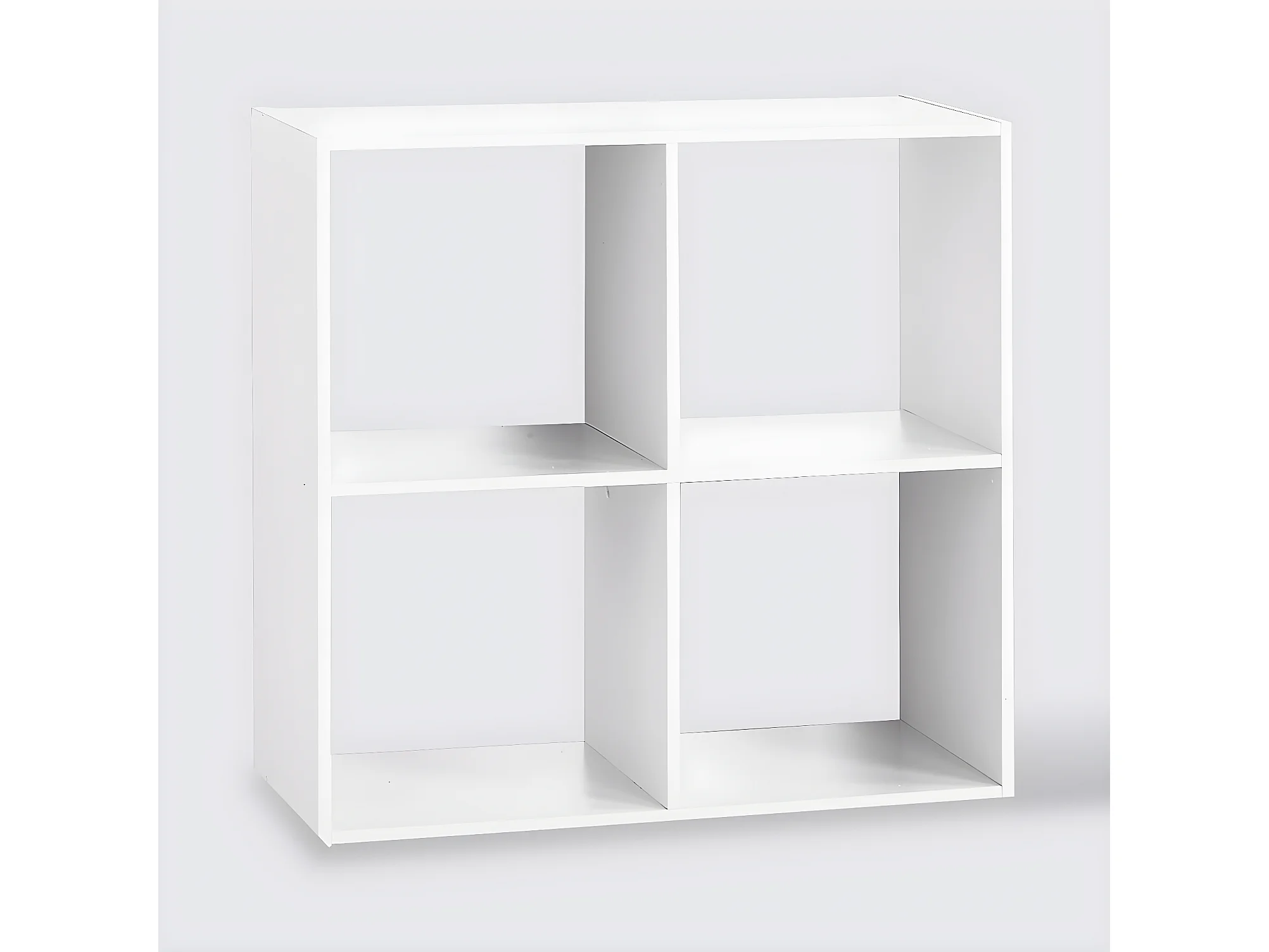 Étagère avec 4 cases en panneaux de particules coloris blanc - Longueur 67 x Profondeur 32 x Hauteur 67 cm