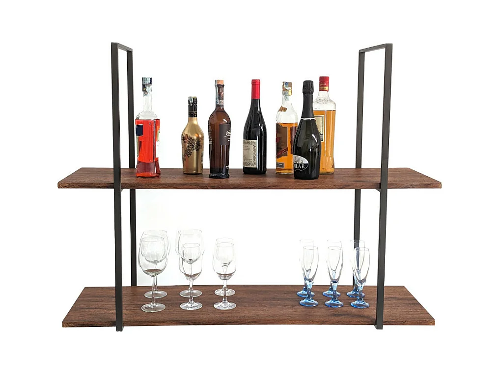 Etagère BAR SHELF 115 cm MARRON avec 2 étagères pour verres et bouteilles par Yelloo