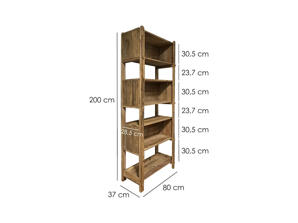 Etagère bibliothèque 200 cm 3 niches bois pin recyclé - CHALET