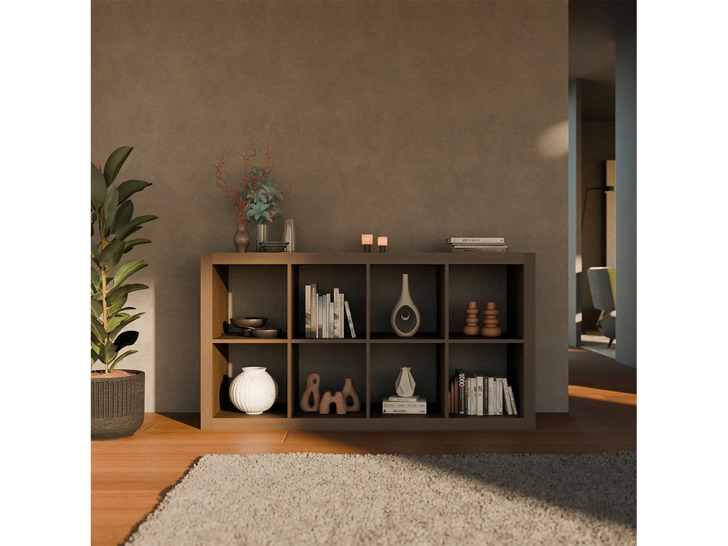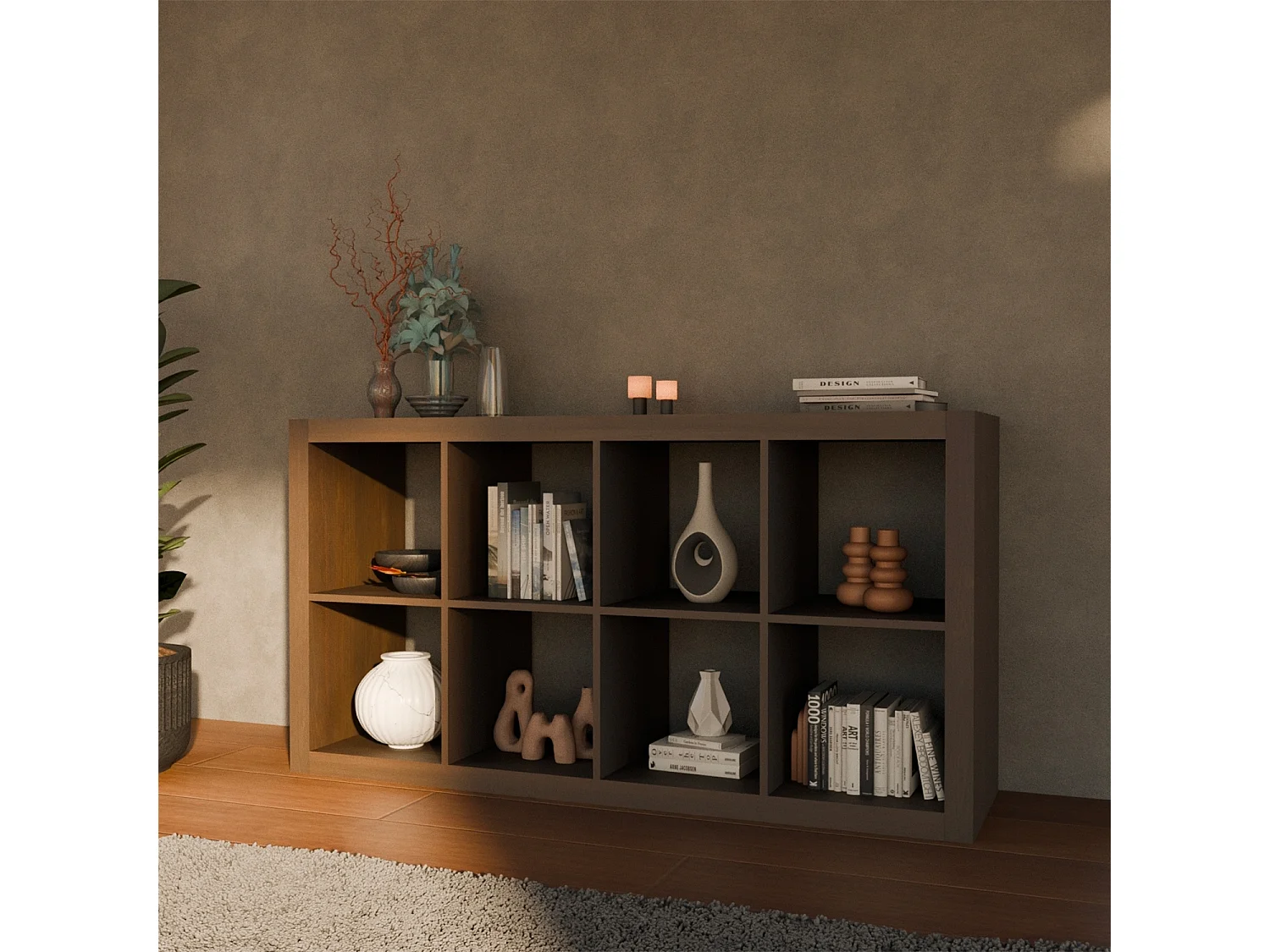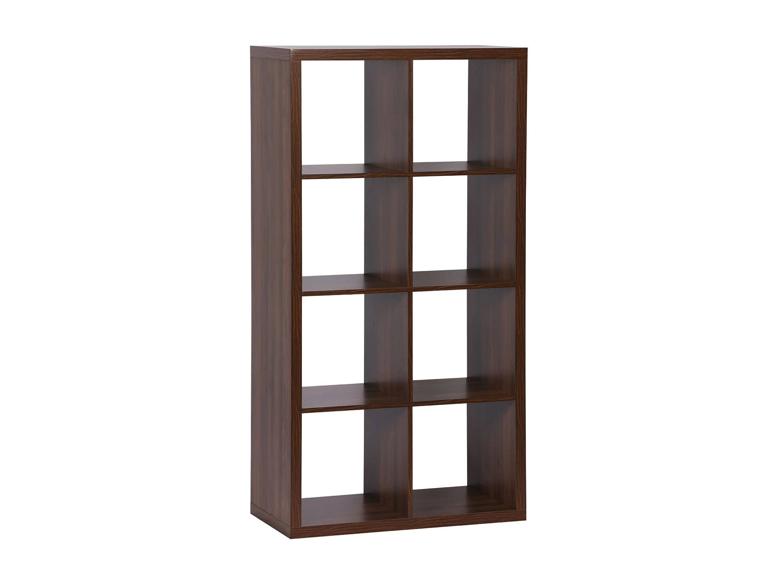 Etagère bibliothèque 4 niveaux 8 compartiments. casiers. effet bois de noyer. L 76 x P 39 x H 146cm