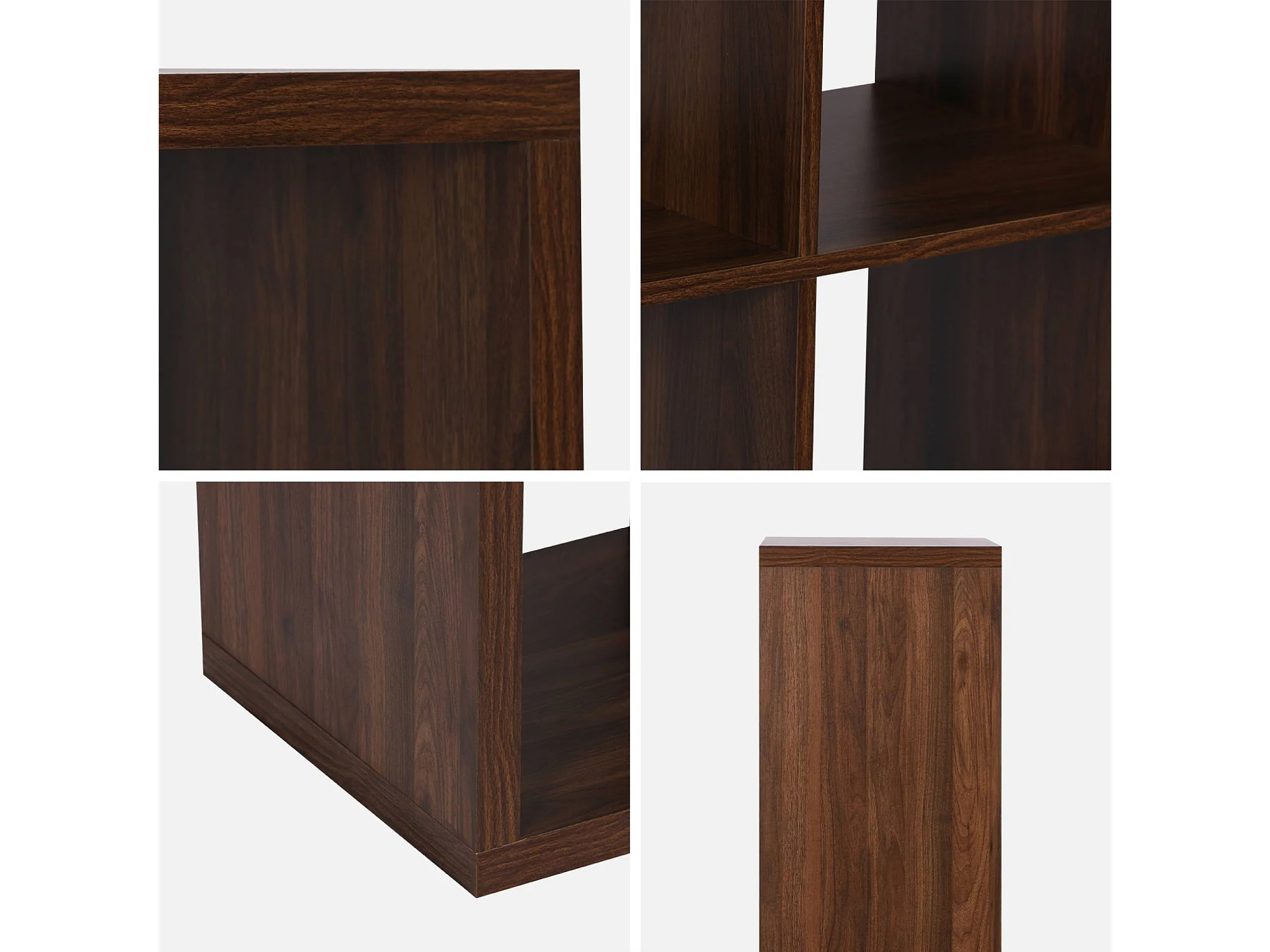 Etagère bibliothèque asymétrique 3 niveaux 6 compartiments. casiers. effet bois de noyer. L 111.2 x P 39 x H 115.2cm