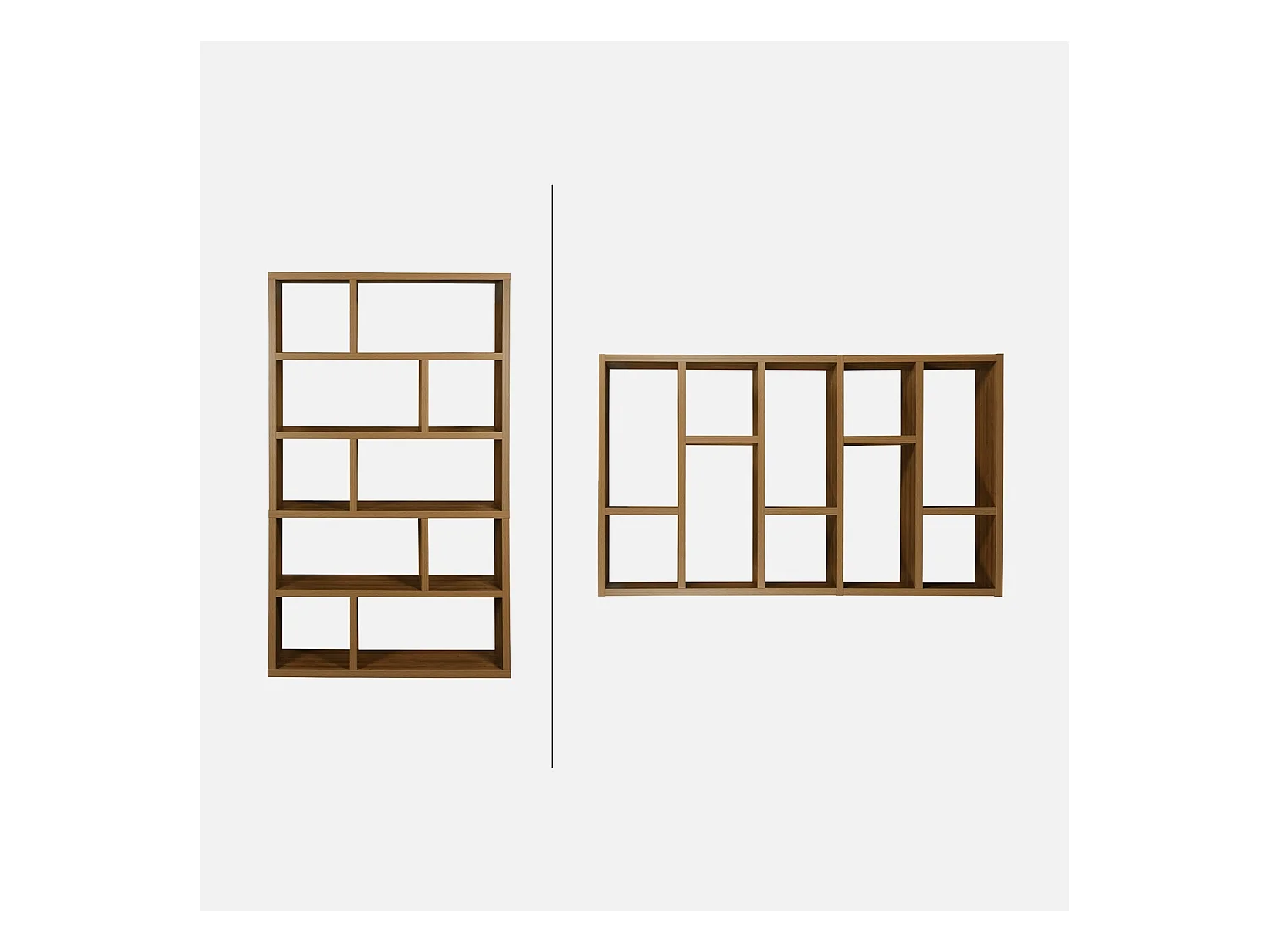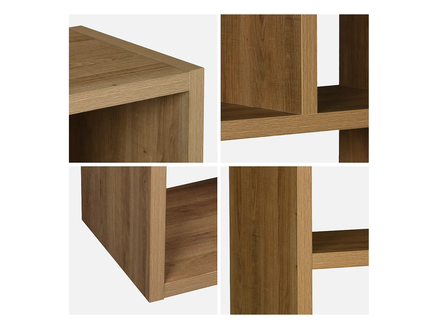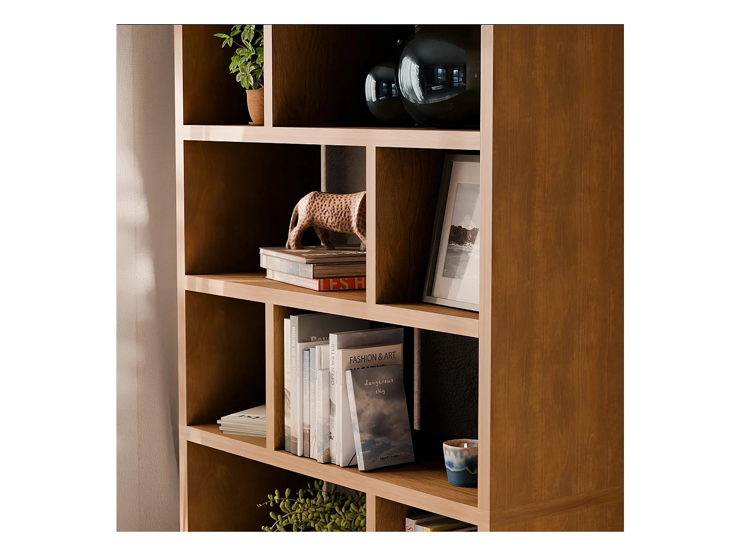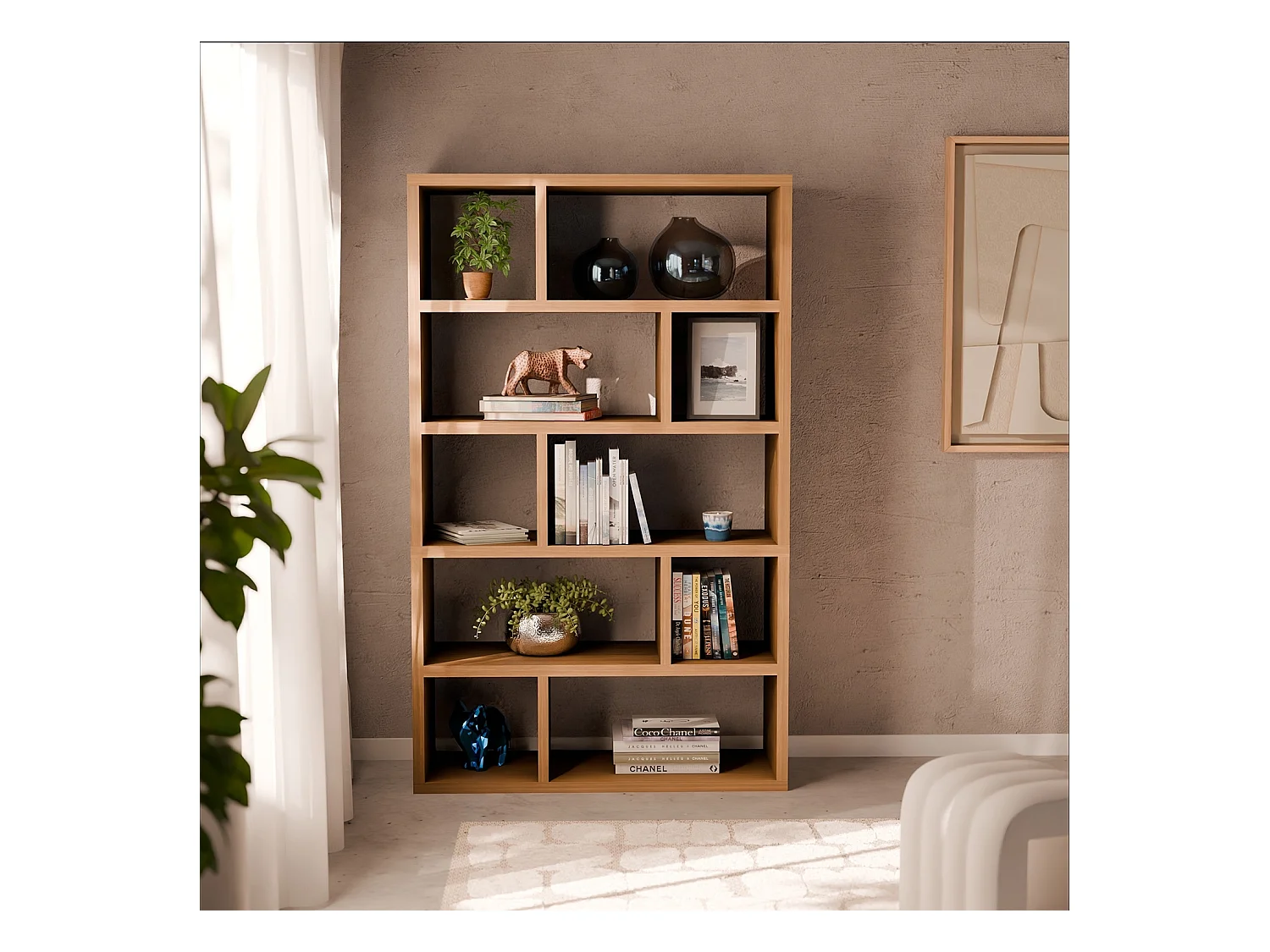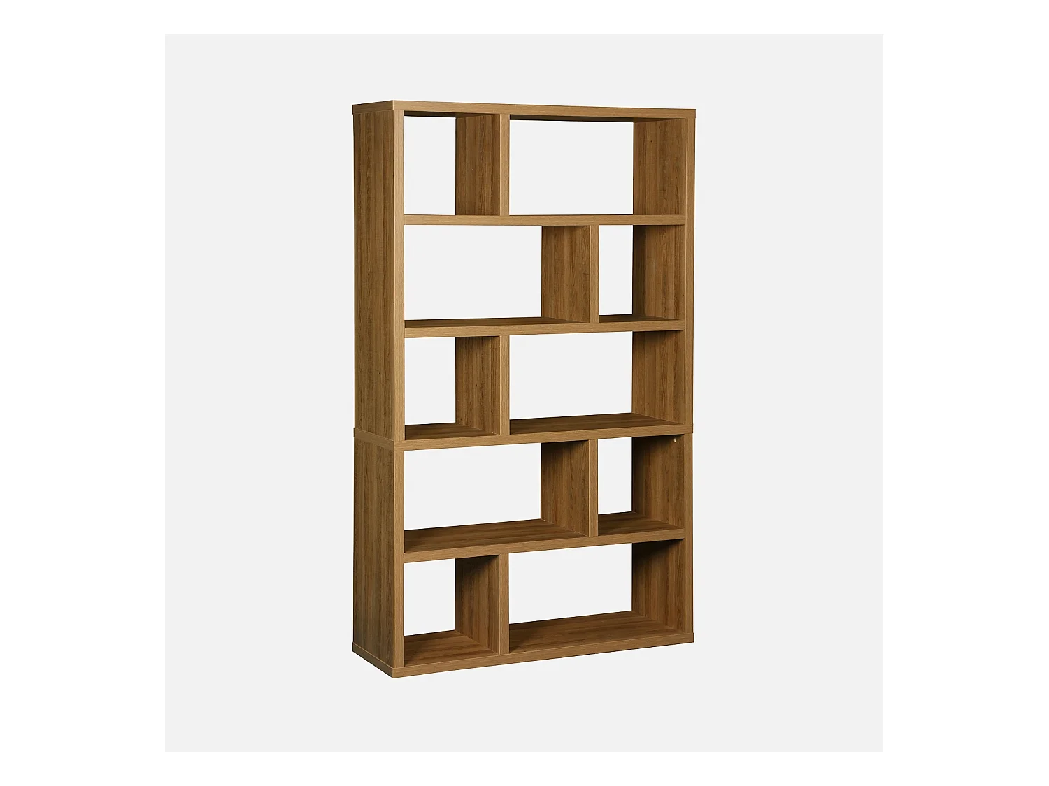 Etagère bibliothèque asymétrique 5 niveaux 10 compartiments. casiers. effet bois de manguier. L 111.2 x P 39 x H 190cm