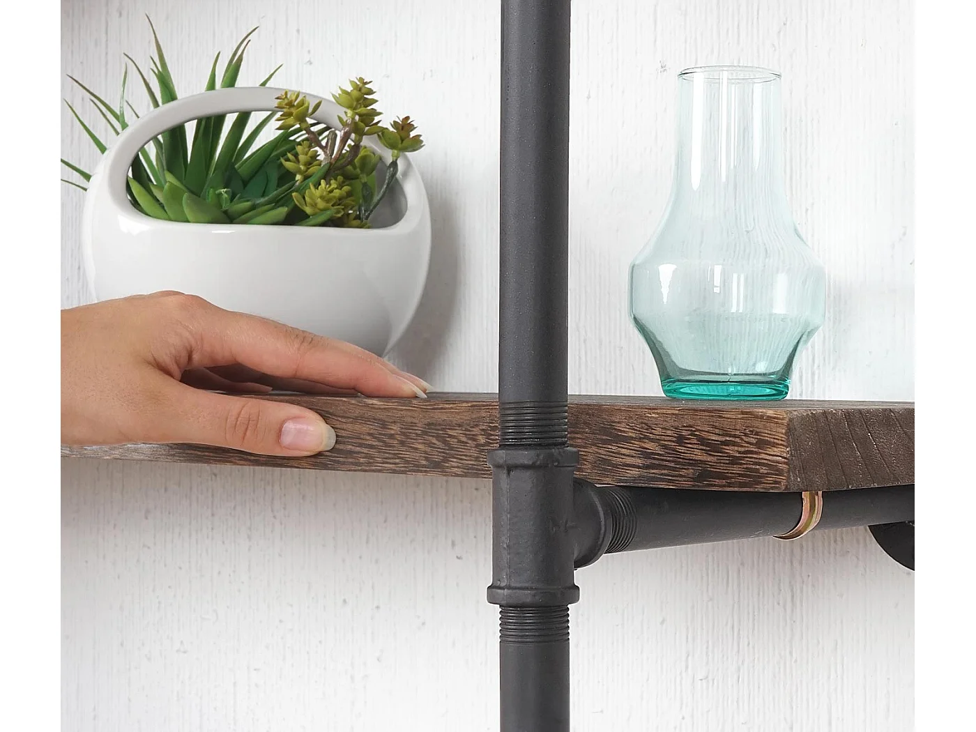 SLIMA - Etagère Murale 2 Plateaux Acier Noir et Aspect Bois