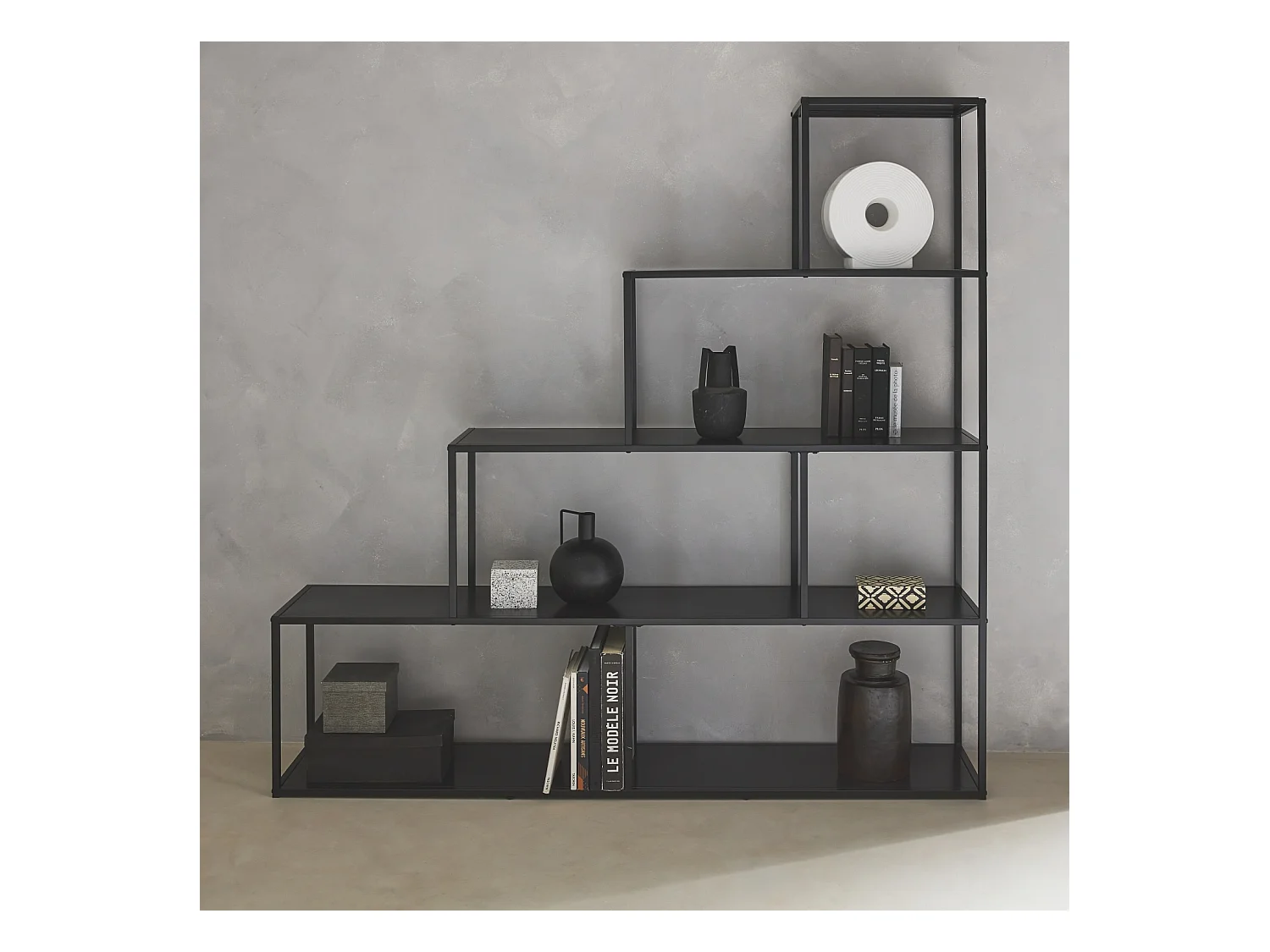 Etagère bibliothèque noir en métal noir asymétrique 4 niveaux INDUSTRIELLE L 69 x P 33 x H 113.5cm