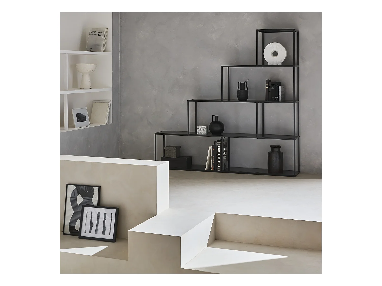 Etagère bibliothèque asymétrique 6 étages en métal noir INDUSTRIELLE L 77 x P 33 x H 185cm