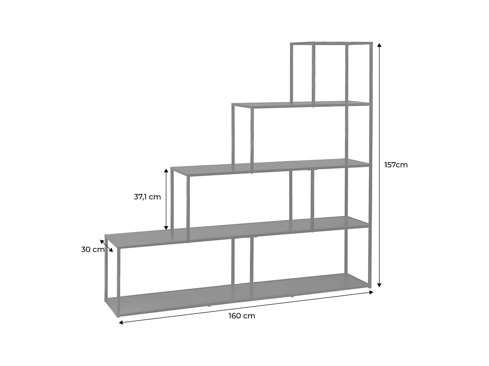 Etagère bibliothèque escalier en métal noir 4 niveaux INDUSTRIELLE L 160 x P 30 x H 157cm