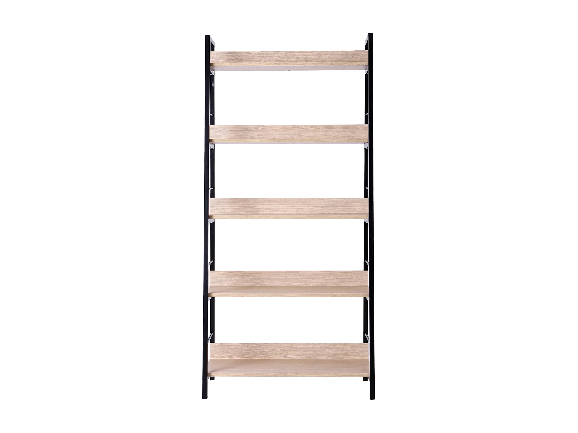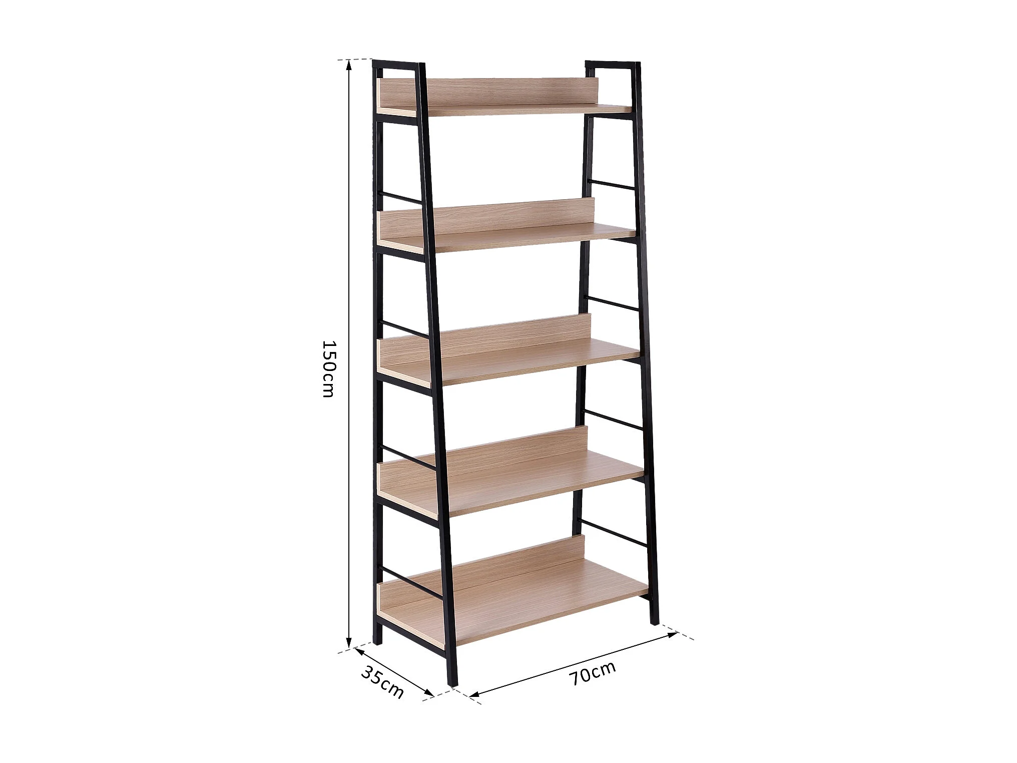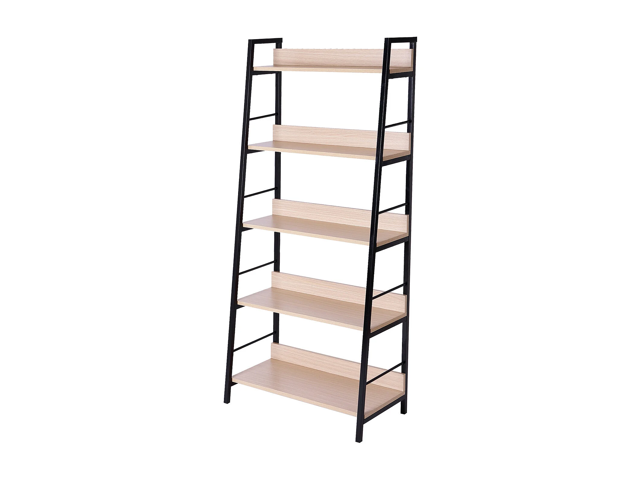 Étagère bibliothèque style industriel incliné 5 niveaux 70L x 35l x 150H cm coloris chêne clair noir
