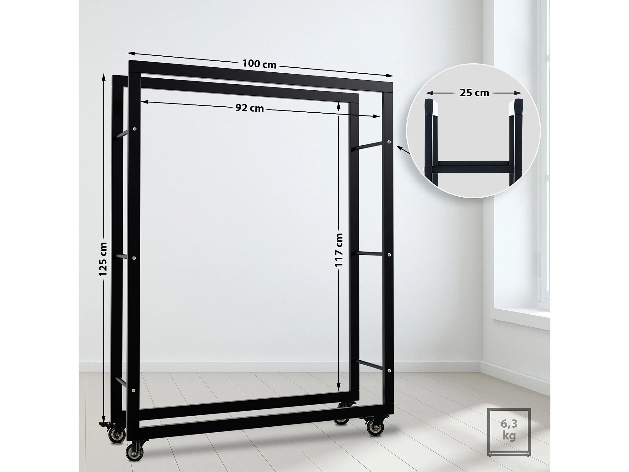 Etagère bois de cheminée - Métal - 25x100x125 cm - Noir - Keri