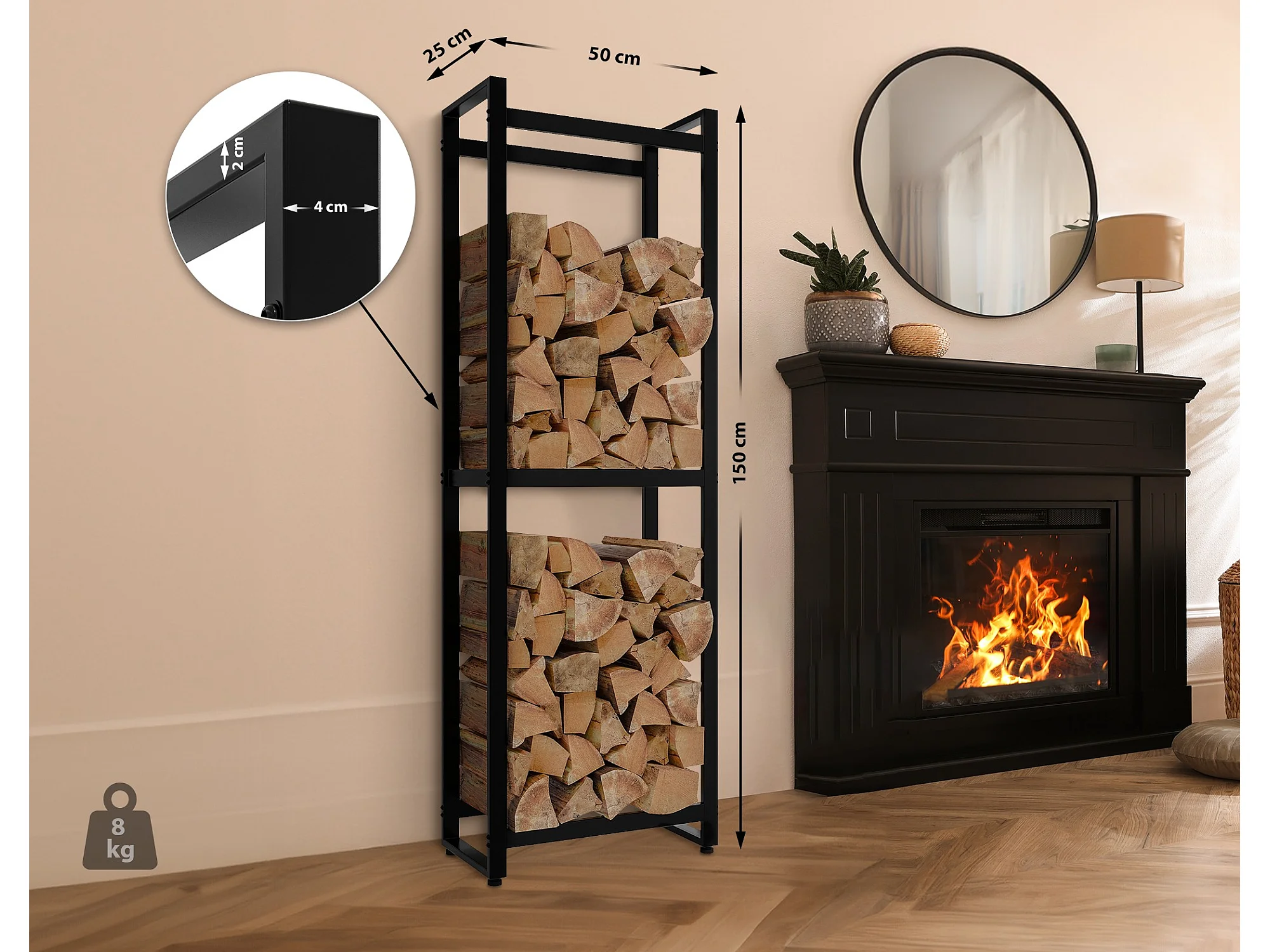 Etagère bois de cheminée - Métal - 25x60x150 cm - Noir - Keri V2
