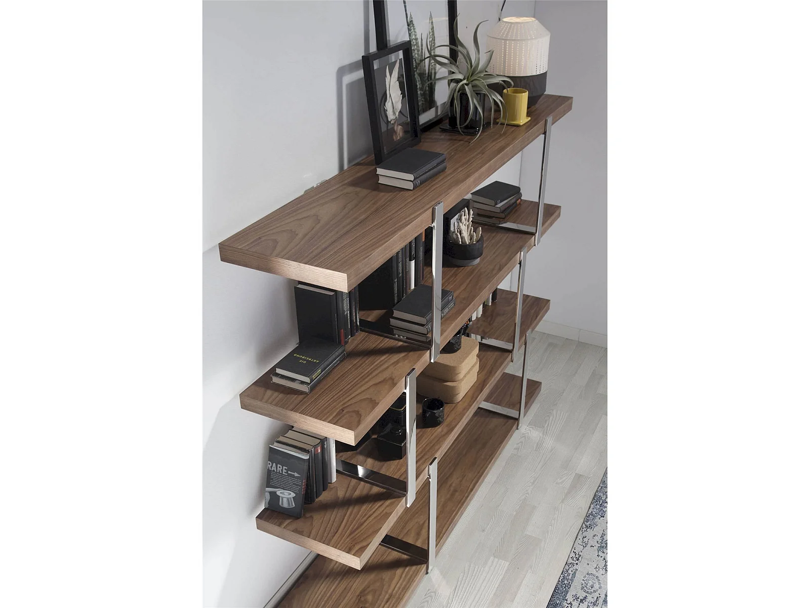 Étagère bois structure acier inoxydable chromé insert cristal translucide