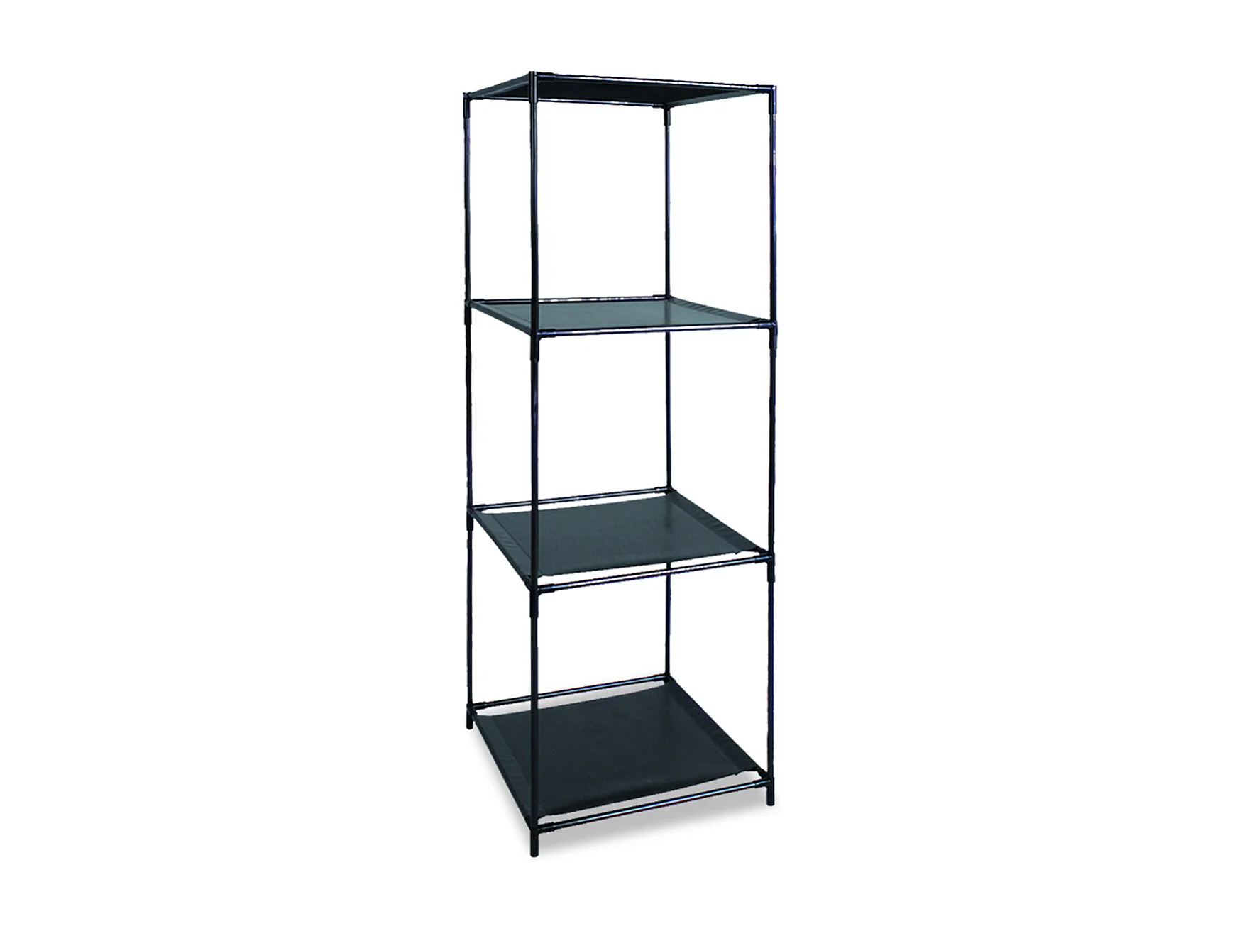 Étagère carrée avec 4 tablettes Coloris Noir, étagère pour vêtements/Jouets en Tissu avec Structure en métal Noir - Longueur 34.5 x Profondeur 34.5 x Hauteur 104 cm