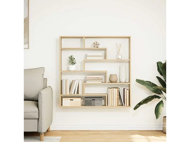 Étagère cube murale 7 compartiments chêne fumé bois ingénierie