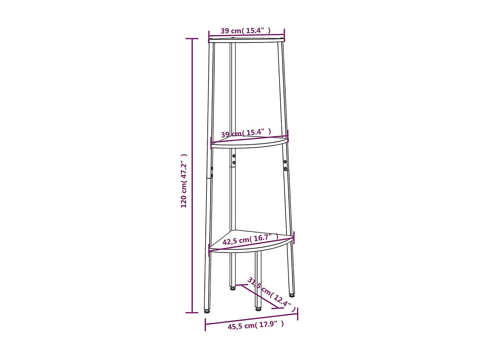 Étagère d'angle 3 niveaux Noir 45,5x31,5x120 cm