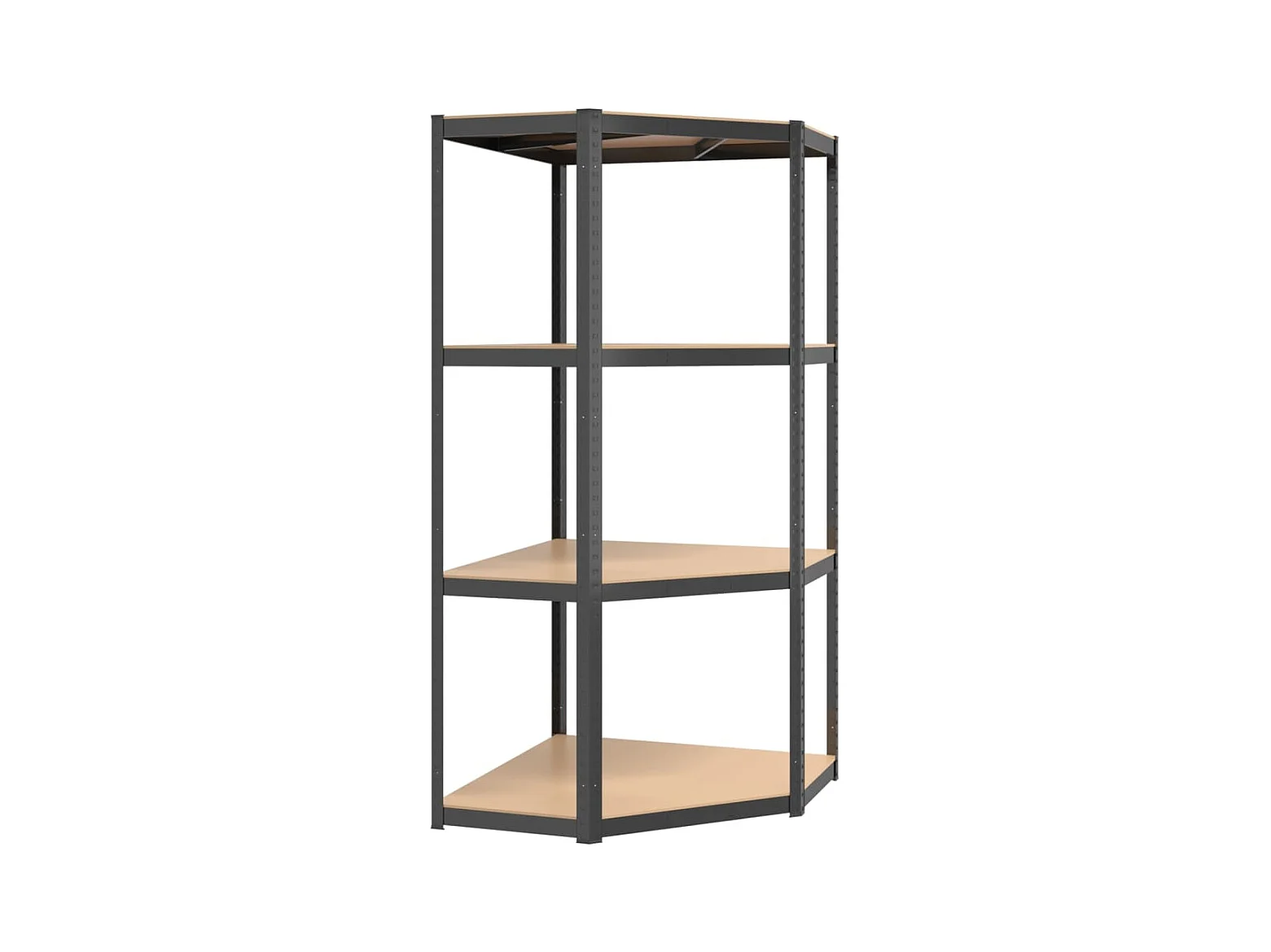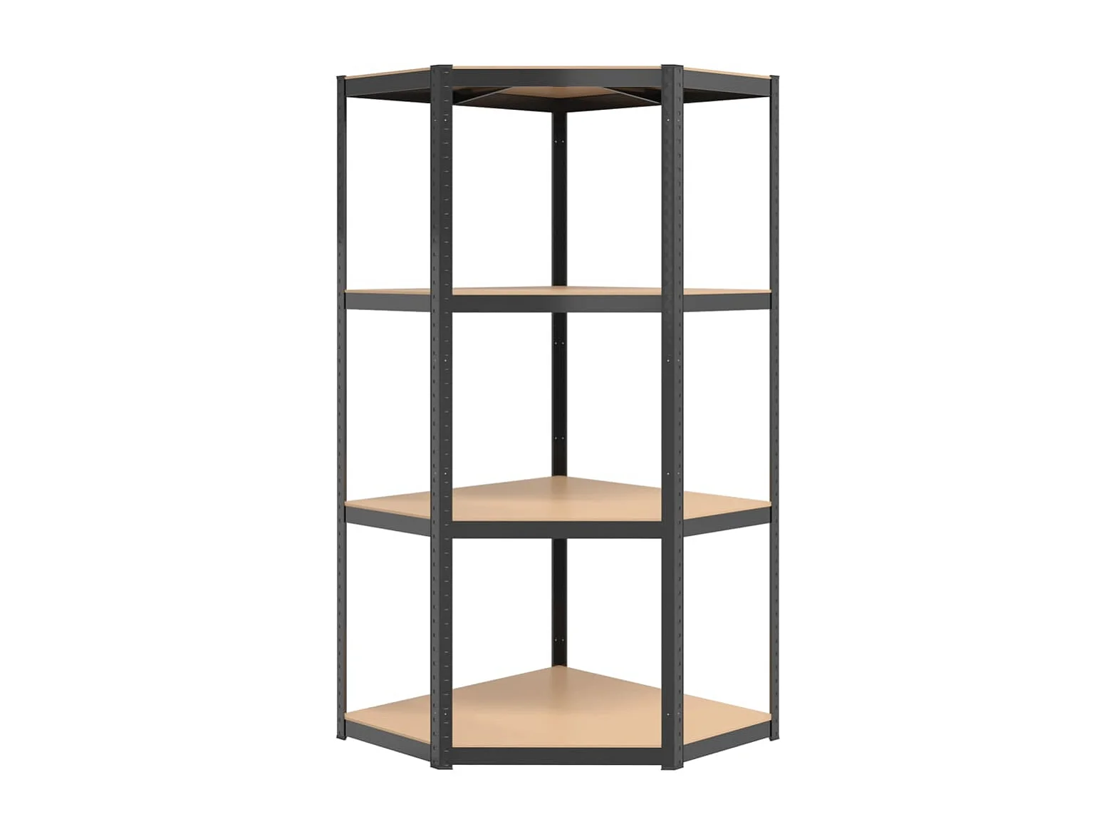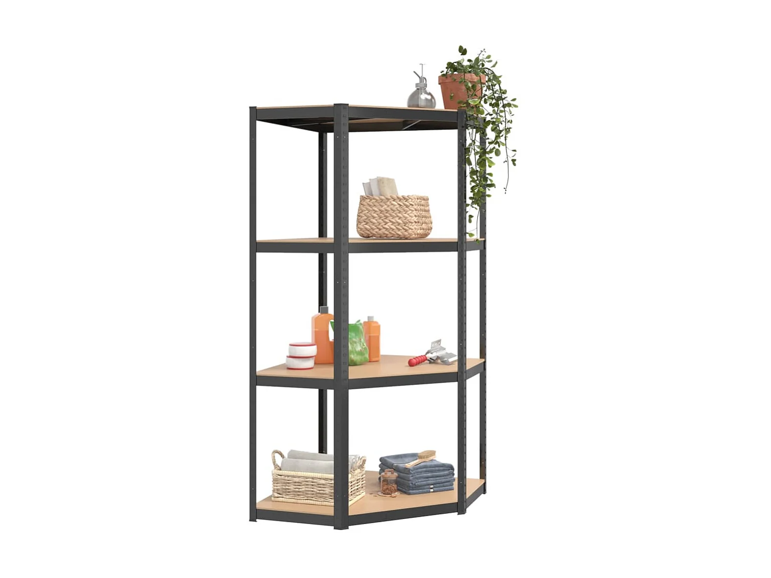 Étagère d'angle à 4 niveaux Anthracite Acier bois d'ingénierie OFR28780 BonneVie Meuble