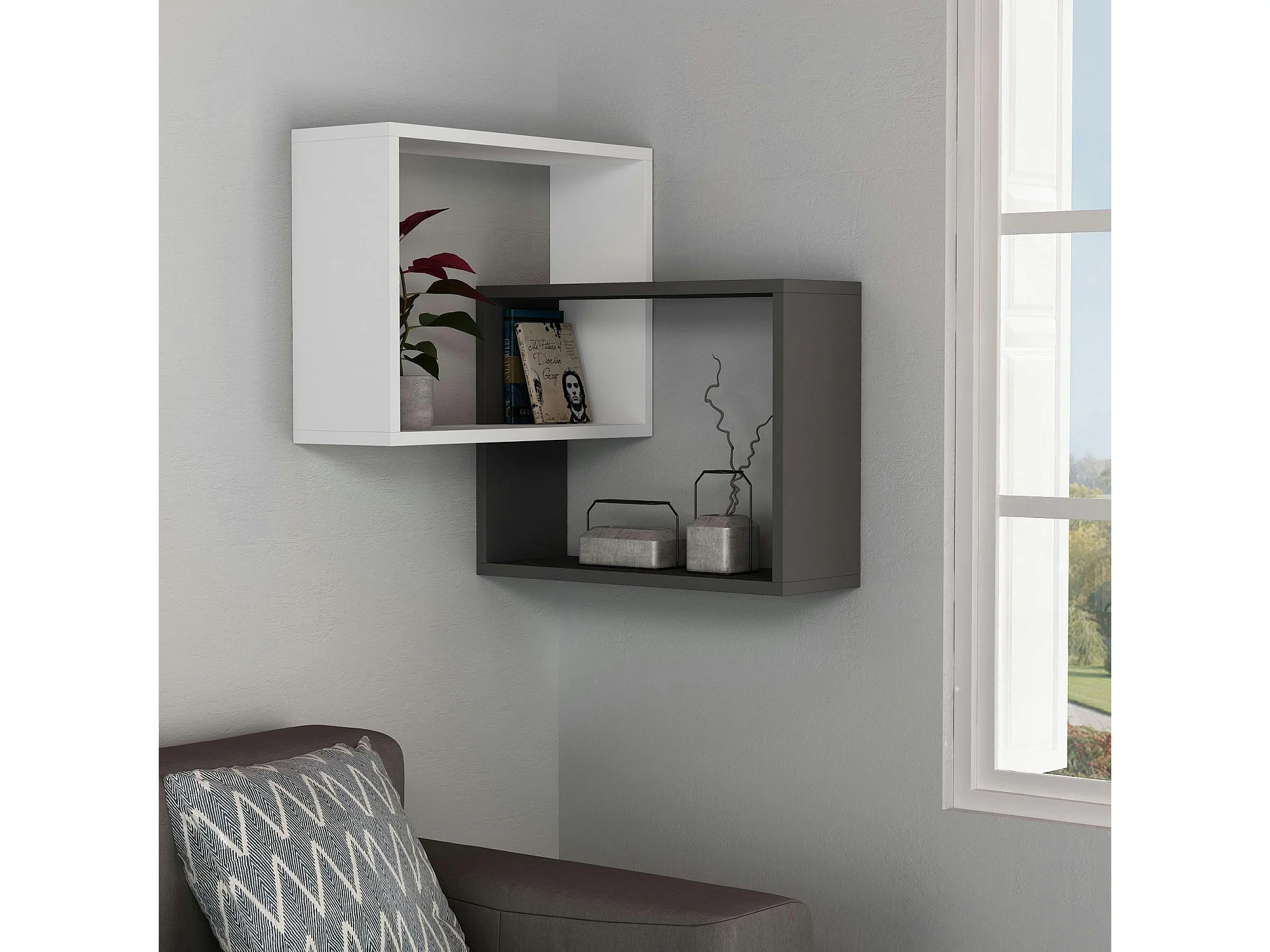 Étagère d'angle blanc & gris - 2 cubes imbriqués MARFA