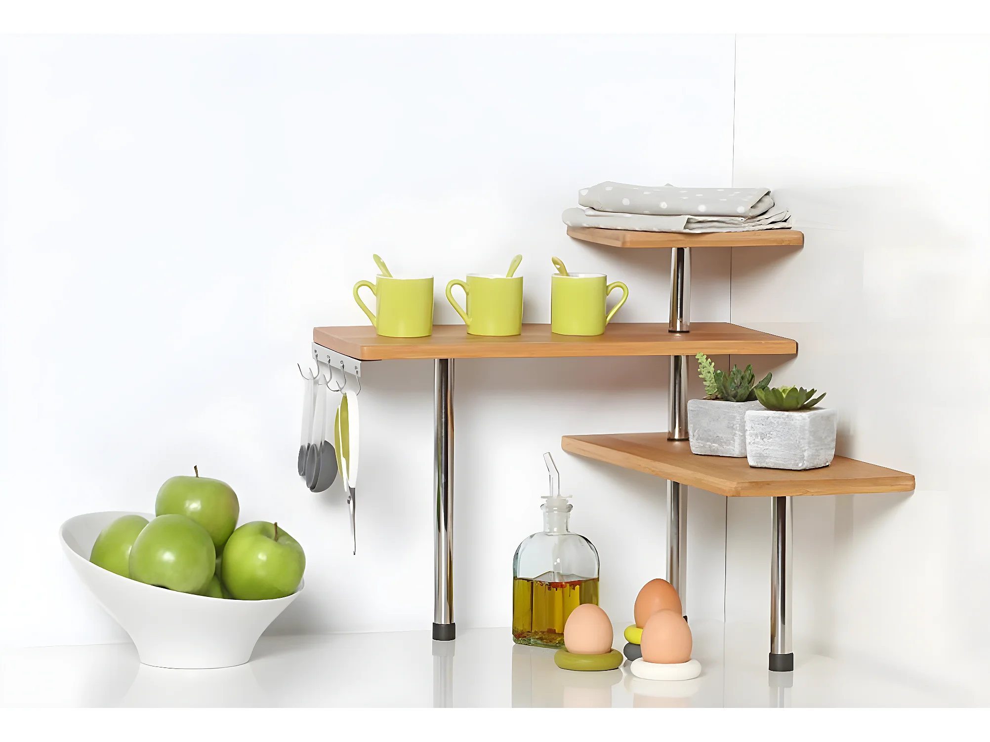 Étagère d'angle de cuisine avec 3 niveaux en bambou - Longueur 45 x Profondeur 43 x Hauteur 38,5 cm