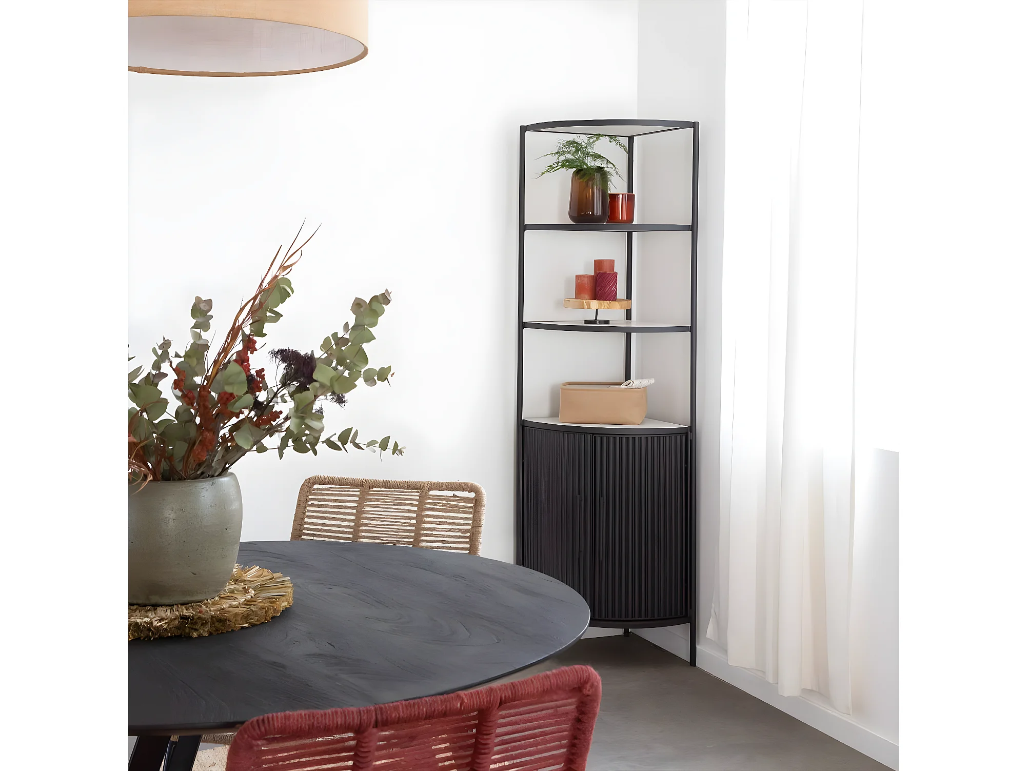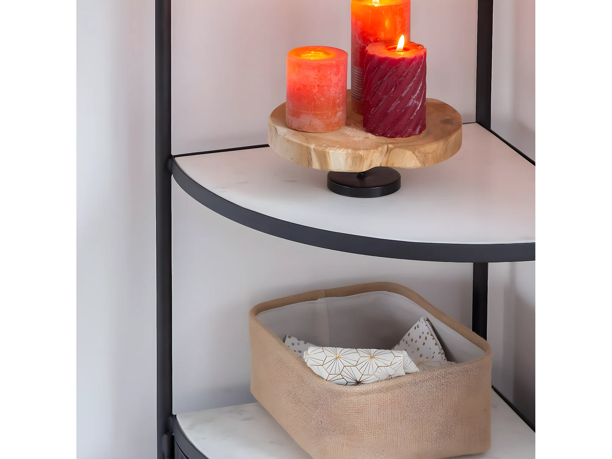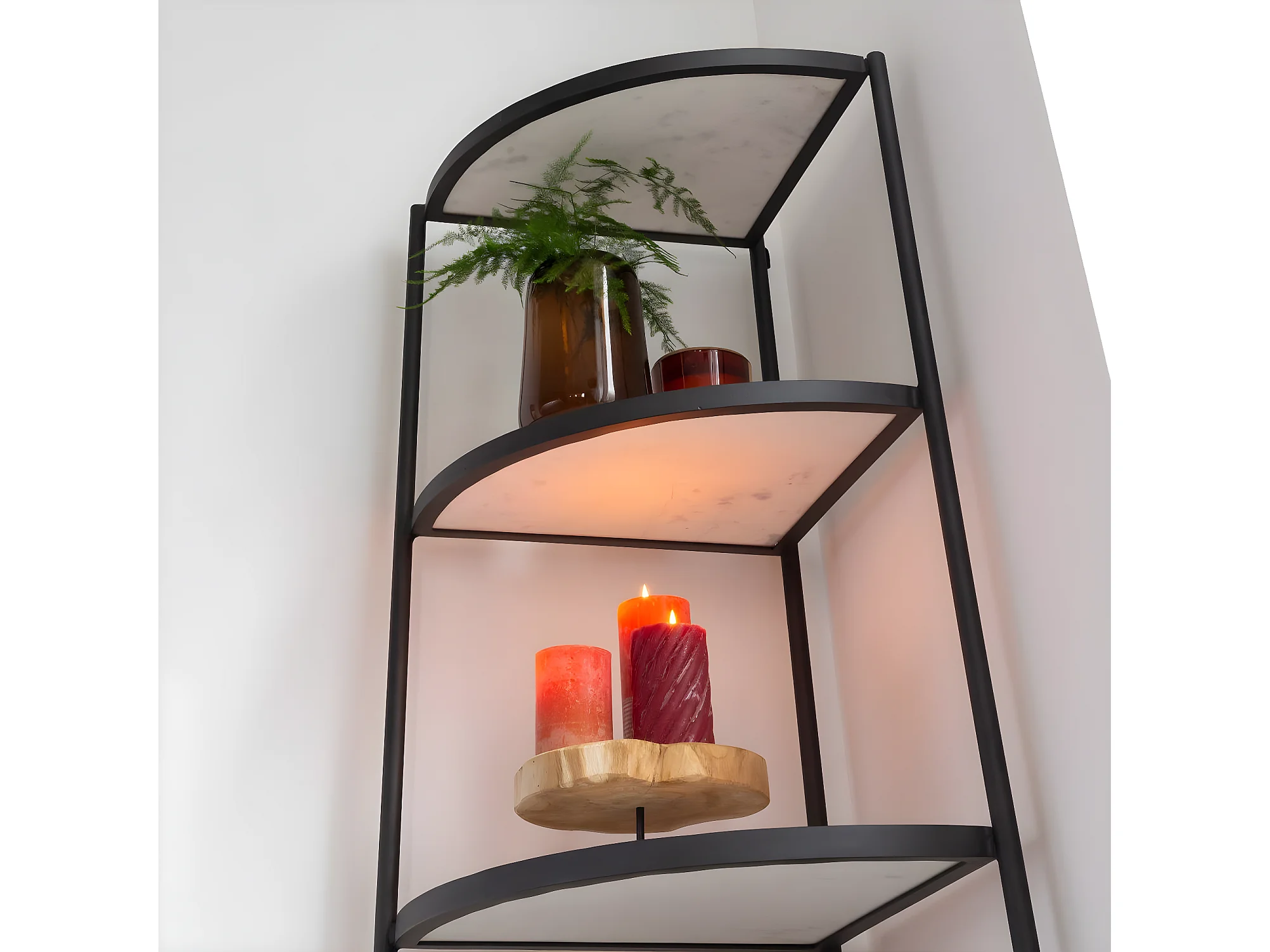 Etagère d'angle en métal et marbre Mona