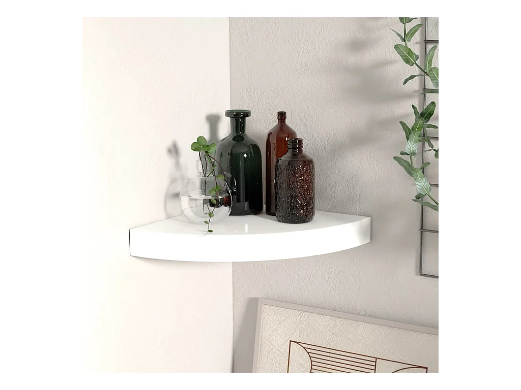 Étagère d'angle murale blanc brillant 35x35x3,8 cm MDF OFR18856 BonneVie Meuble