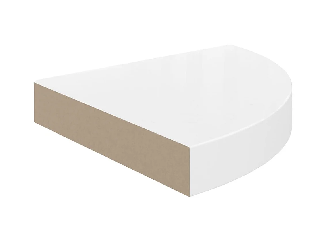 Étagère d'angle murale blanc brillant 25x25x3,8 cm MDF OFR80135 BonneVie Meuble