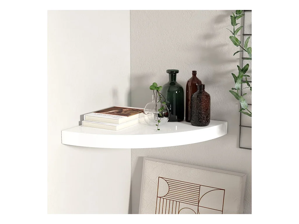 Étagère d'angle murale blanc brillant 35x35x3,8 cm MDF OFR18856 BonneVie Meuble