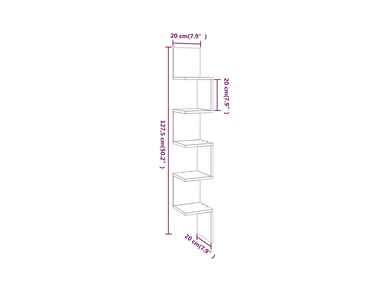 Étagère d'angle murale Chêne brun 20x20x127,5cm Bois ingénierie