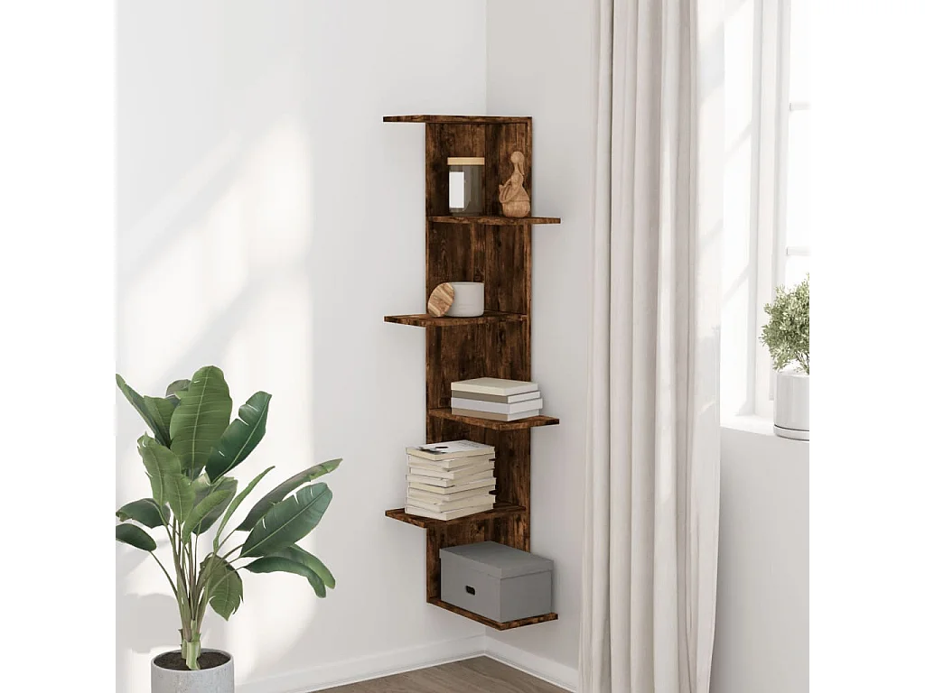 Étagère d'angle murale chêne fumé bois d'ingénierie