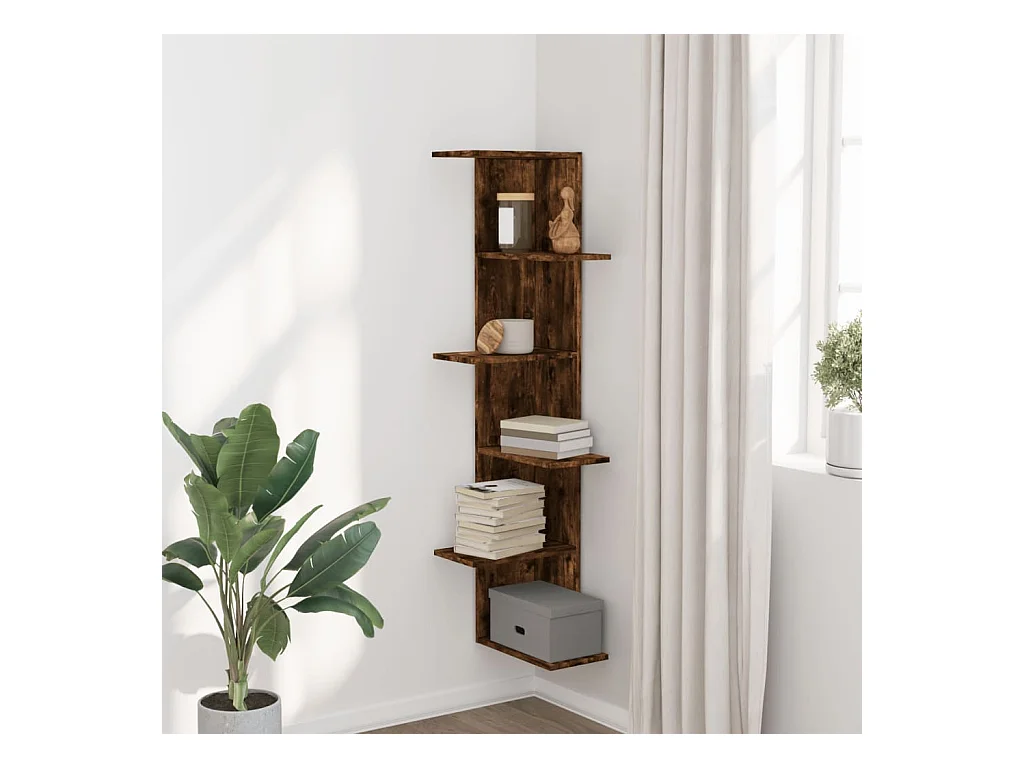 Étagère d'angle murale chêne fumé bois d'ingénierie