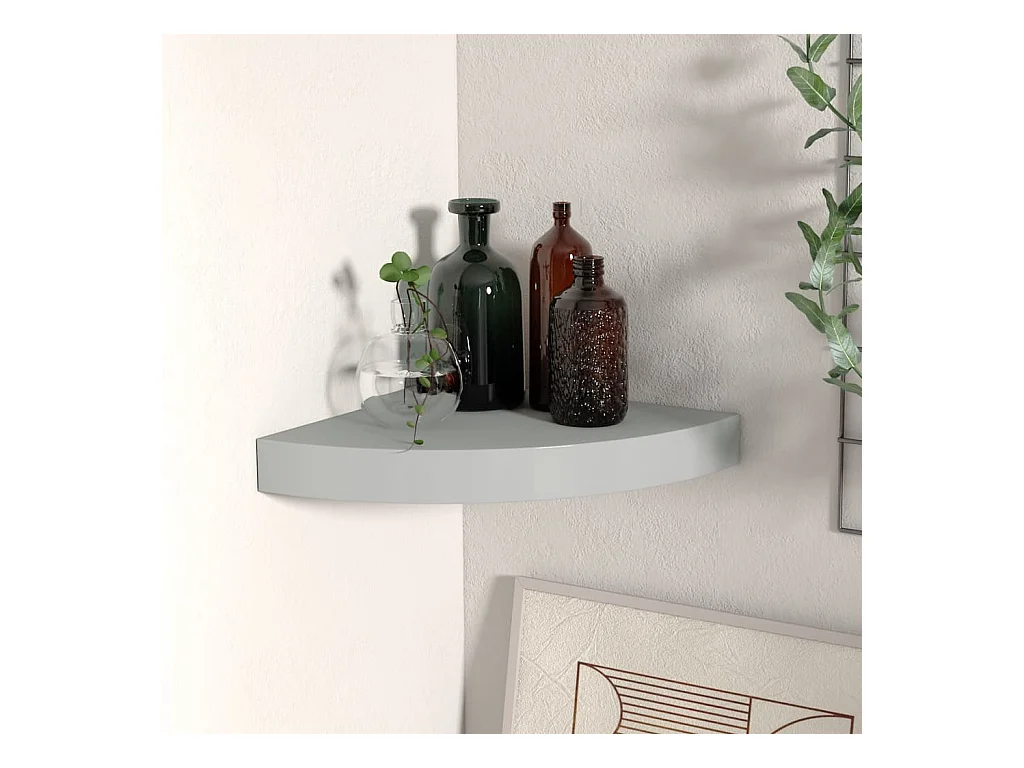 Étagère d'angle murale gris brillant 35x35x3,8 cm MDF OFR90917 BonneVie Meuble
