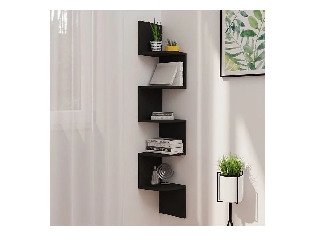 Étagère d'angle murale noir 19x19x123 cm bois d'ingénierie OFR96469 BonneVie Meuble