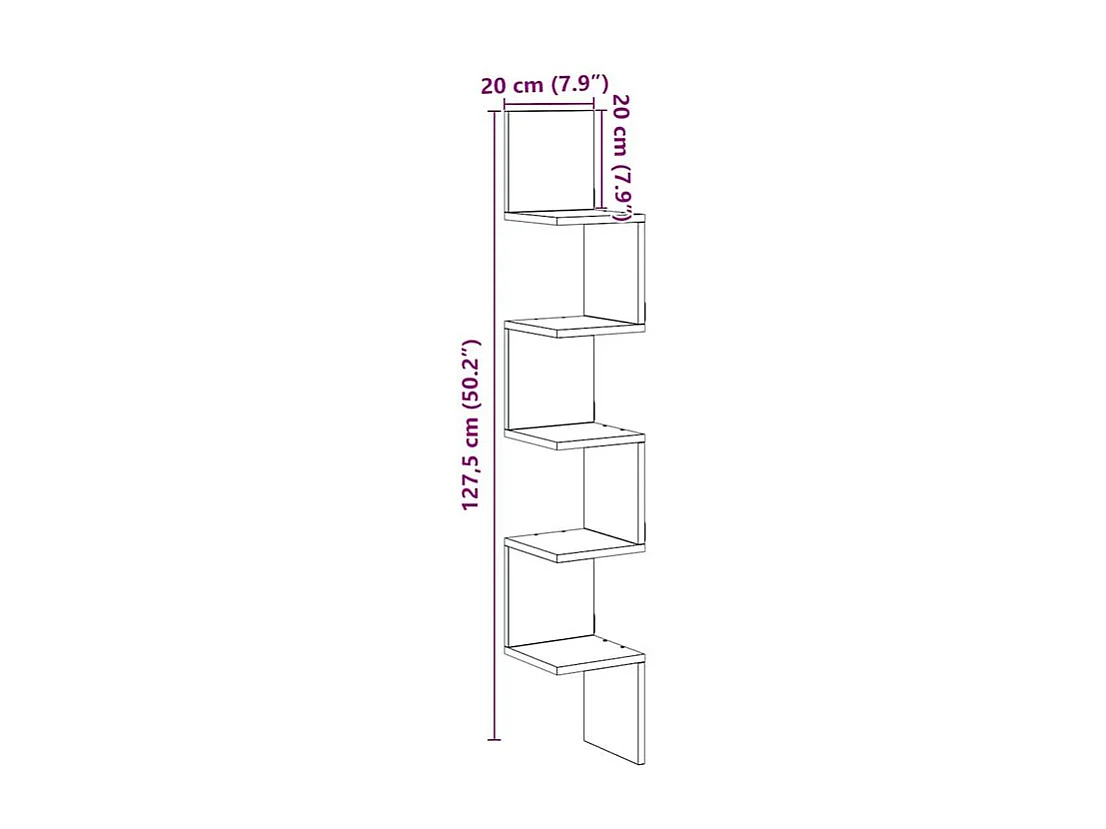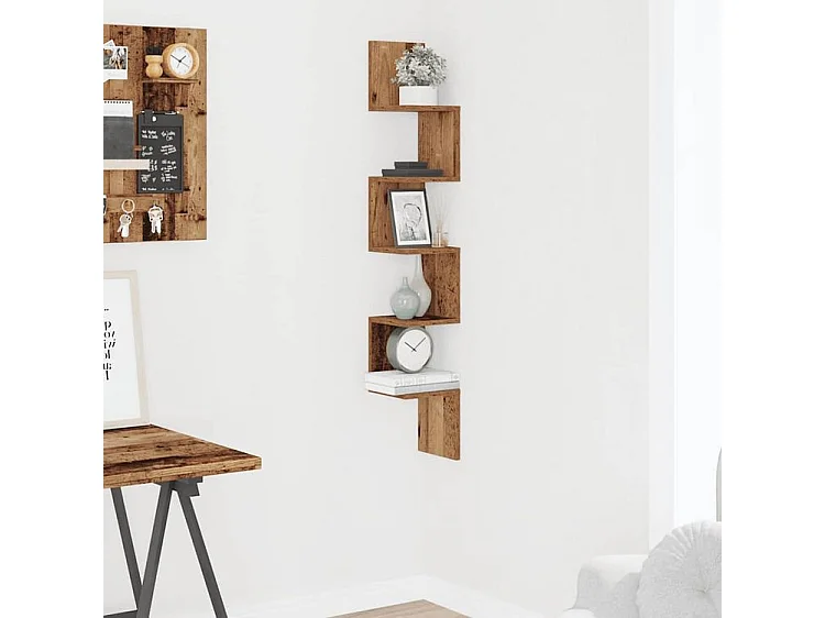 Étagère d'angle murale vieux bois 20x20x127,5
