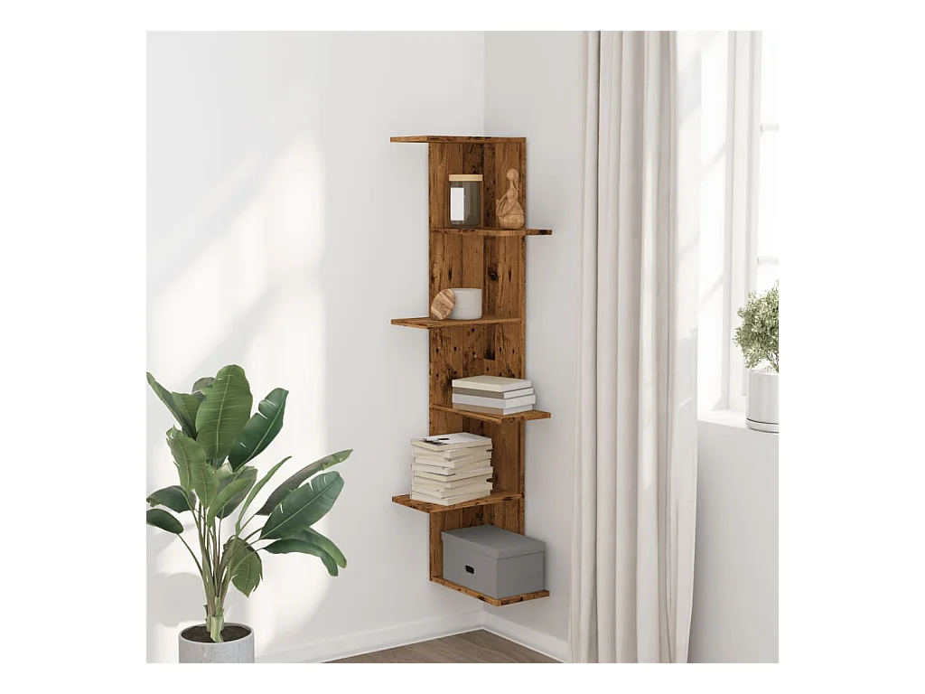 Étagère d'angle murale vieux bois bois d'ingénierie