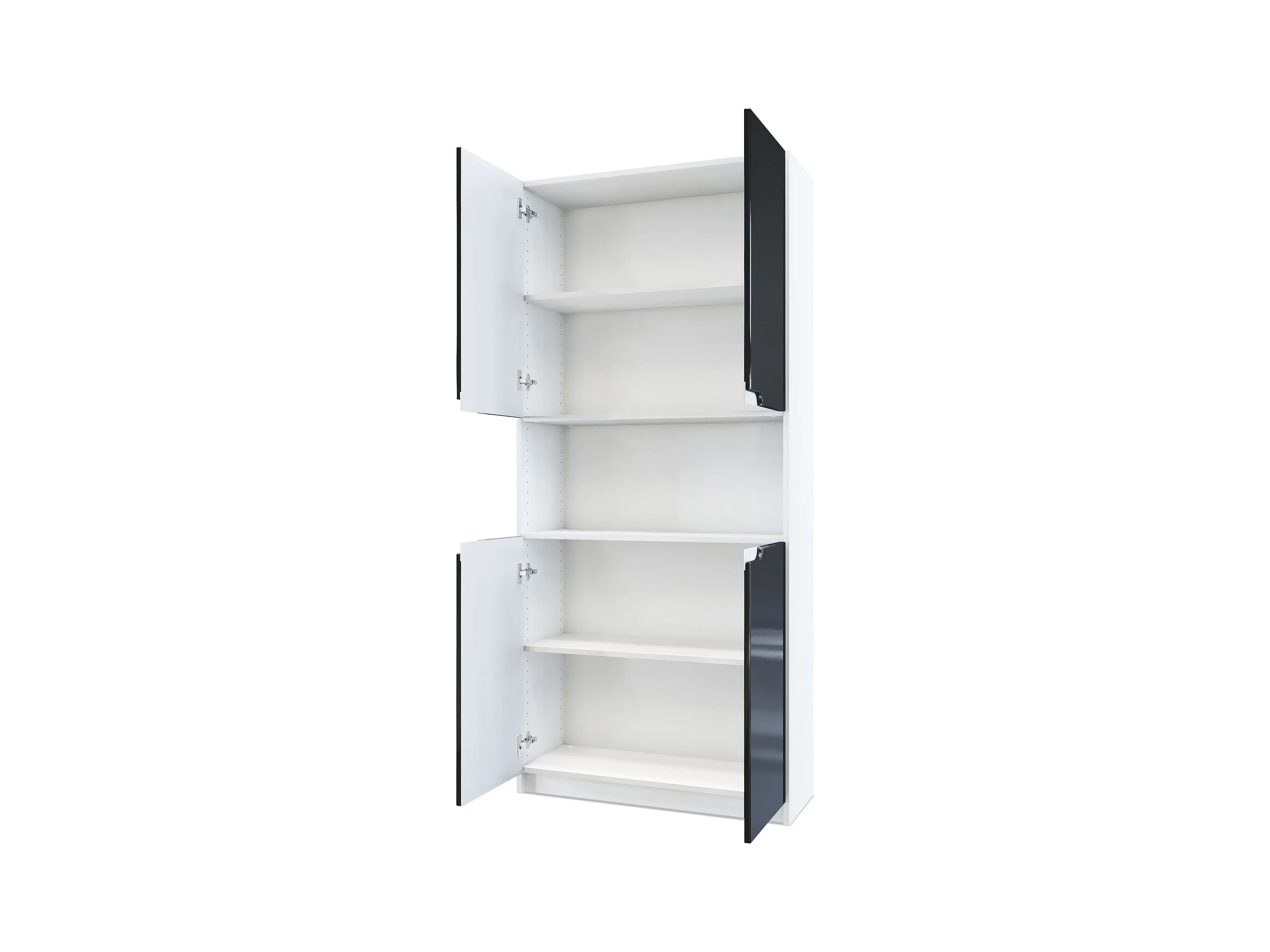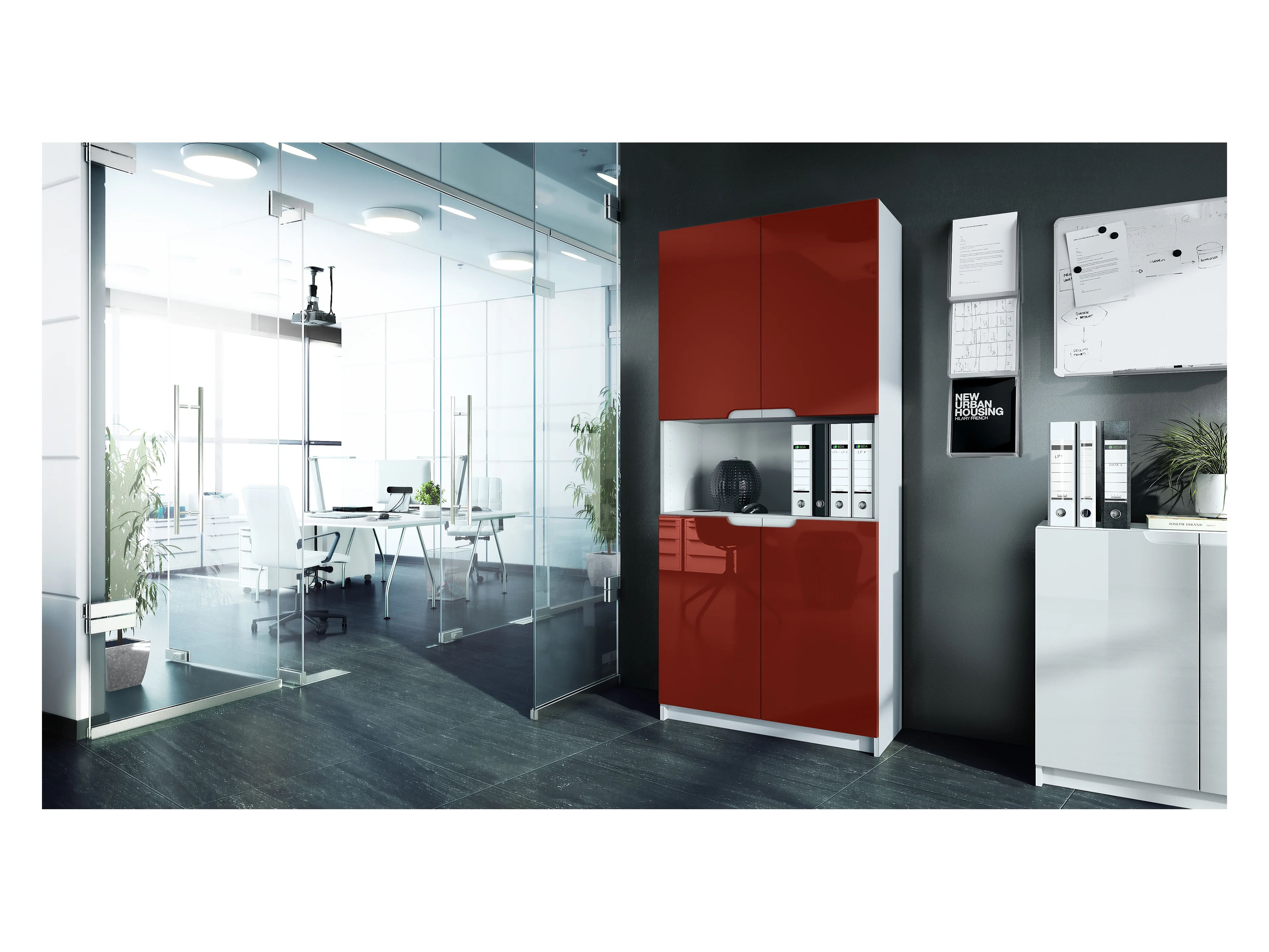 Étagère de bureau Logan V2, Armoire de rangement avec 5 compartiments et 4 portes, blanc mat/bordeaux haute brillance (82 x 184 x 37 cm)
