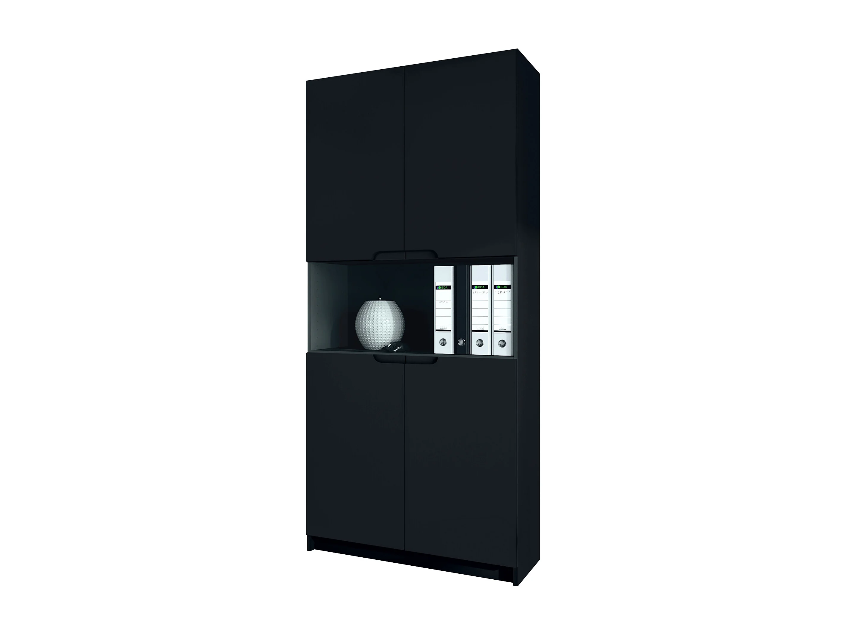 Étagère de bureau Logan V2, Armoire de rangement avec 5 compartiments et 4 portes, noir mat/noir mat (82 x 184 x 37 cm)