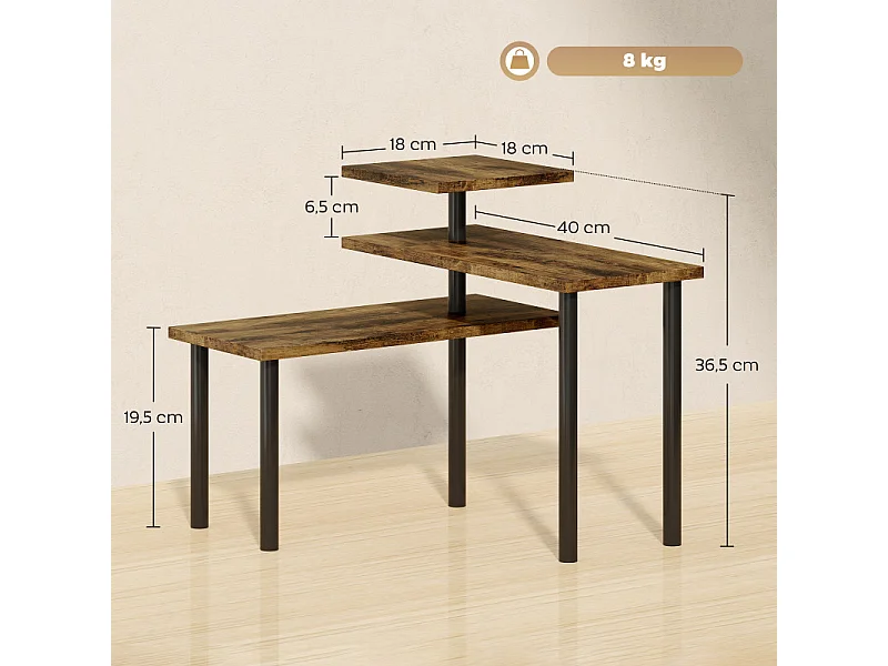 Étagère bibliothèque style industriel incliné 5 niveaux 70L x 35l x 150H cm coloris bois vieilli noir