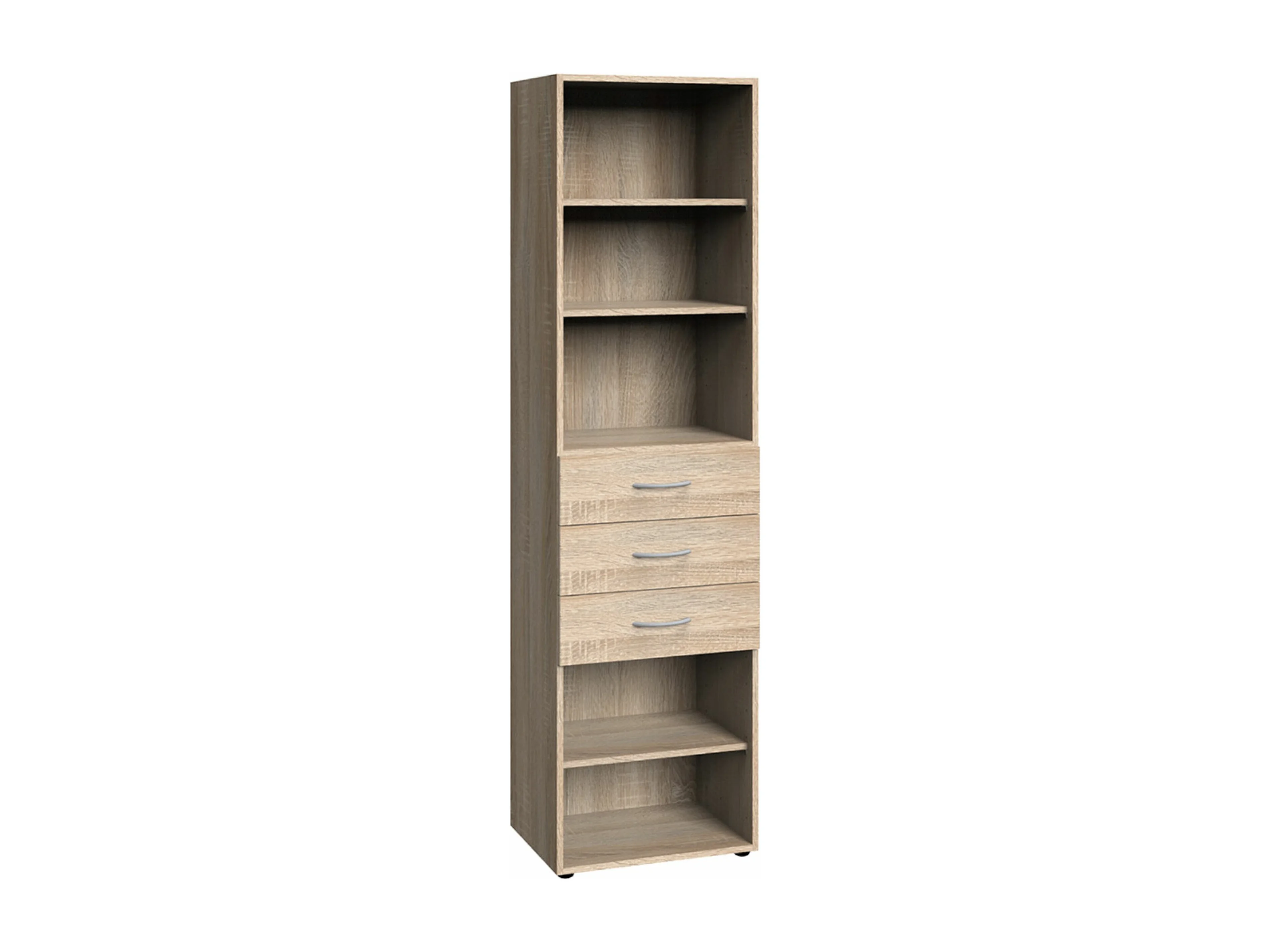 Etagère de rangement avec 3 tiroirs et 3 tablettes en mélamine coloris imitation chêne