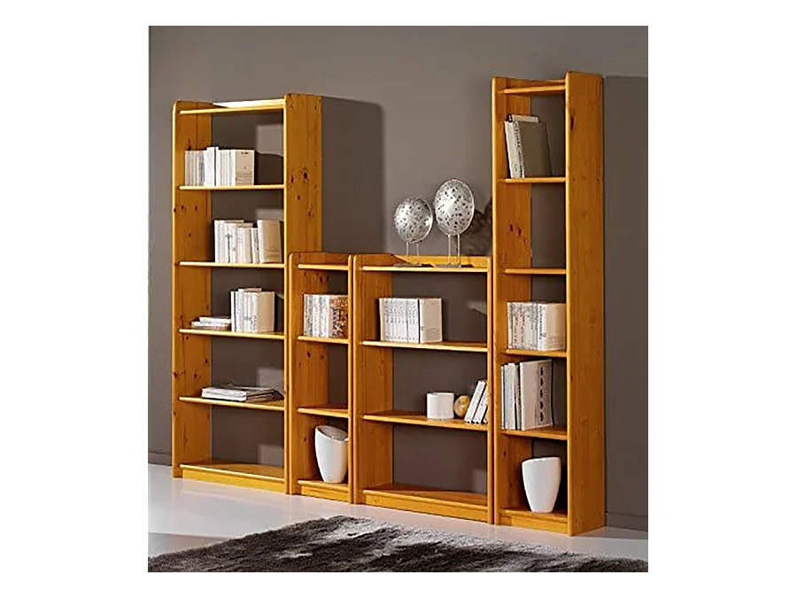 Étagère de rangement / bibliothèque en bois de pin massif coloris miel - Longueur 40 x Profondeur 28 x Hauteur 200 cm