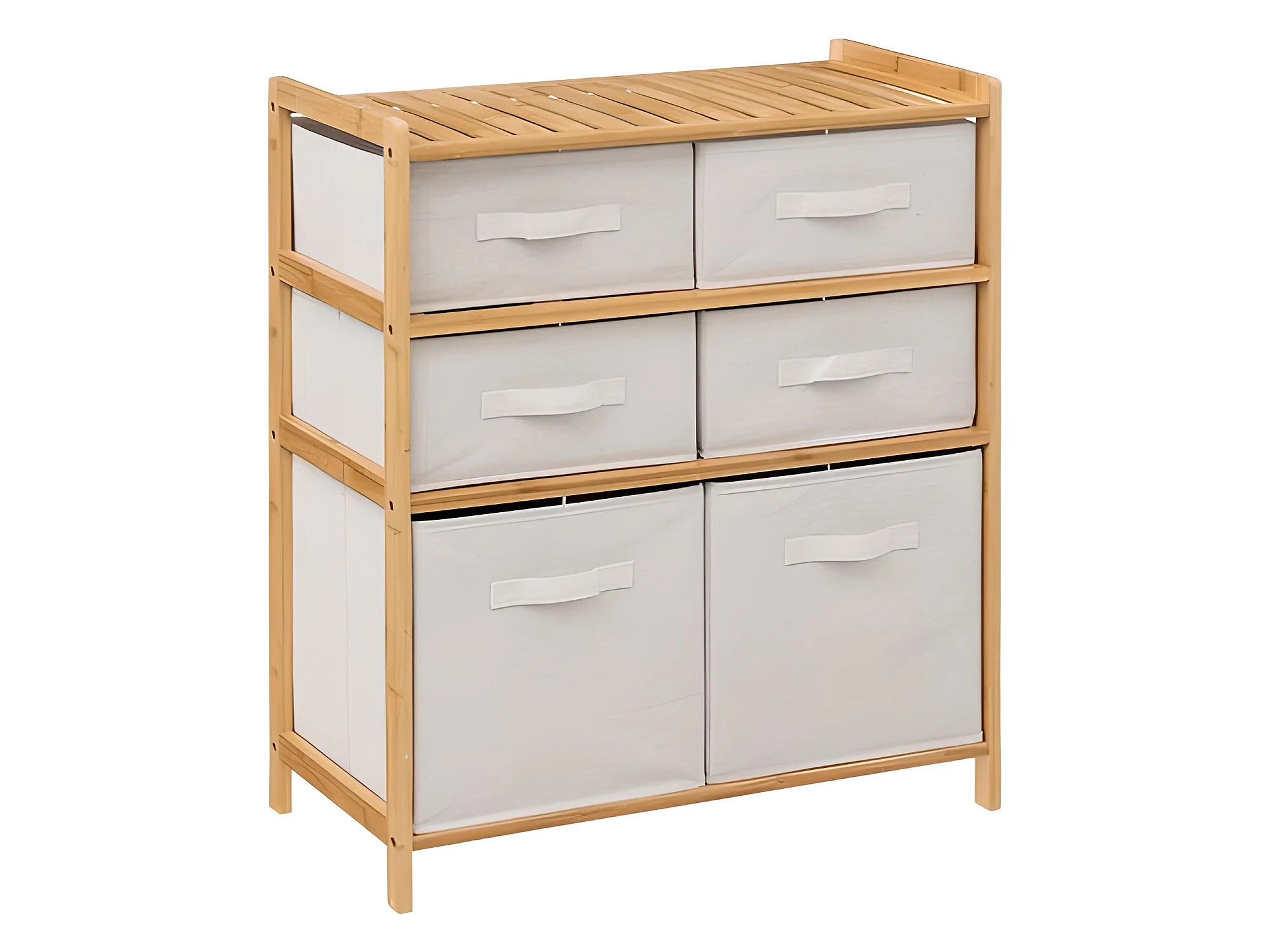 Etagère double avec 6 tiroirs en polyester/coton et bambou coloris lin/naturel