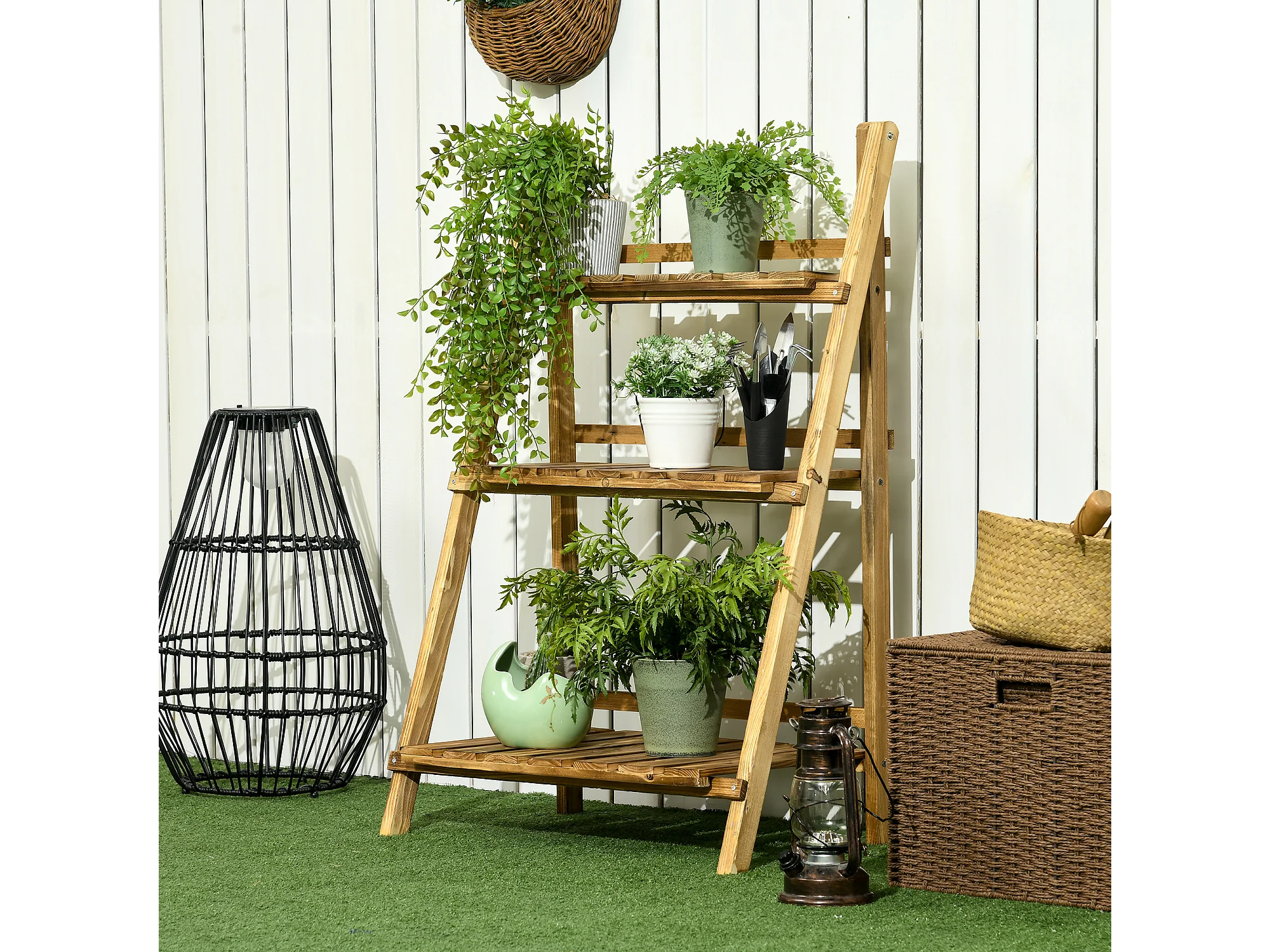 Etagère échelle à fleurs pliable 3 niveaux bois de sapin traité carbonisation
