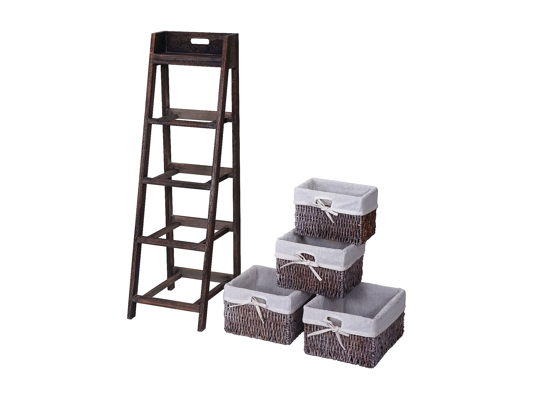 Étagère échelle sur pied bois marron 30 x 35 x 101 cm 04_0002546