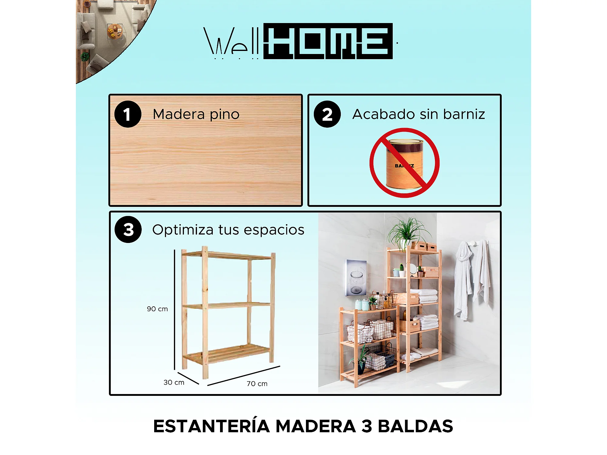 Etagère en bois avec 3 étagères, 90x35x4 cm