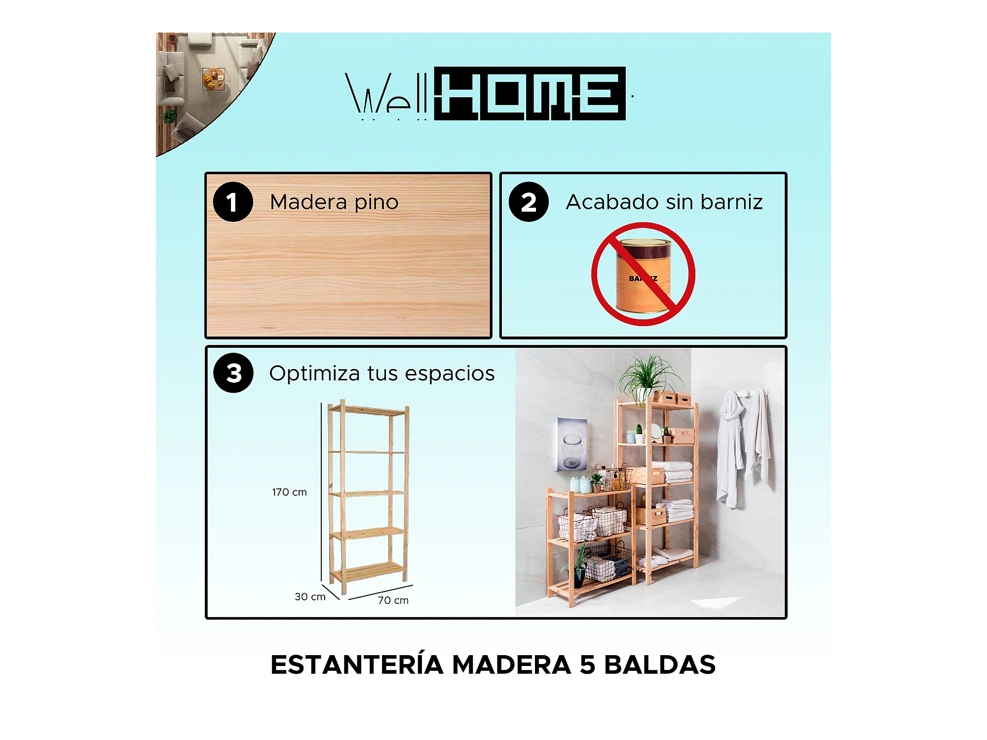 Etagère en bois avec 5 tablettes, 170x35x4 cm