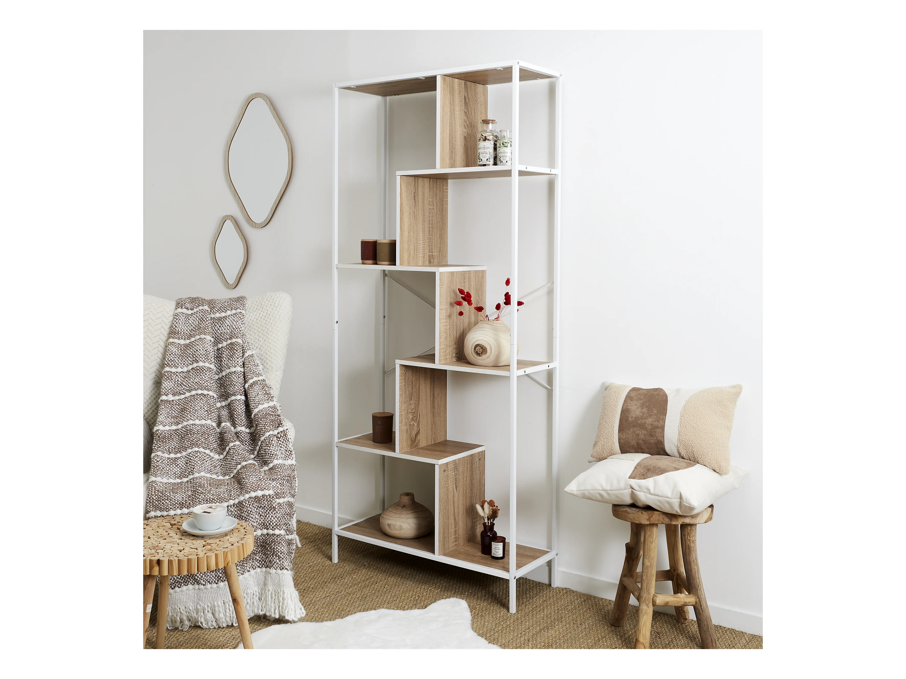 Etagere Edison Blanc 80x30x180cm Blanc, Marron