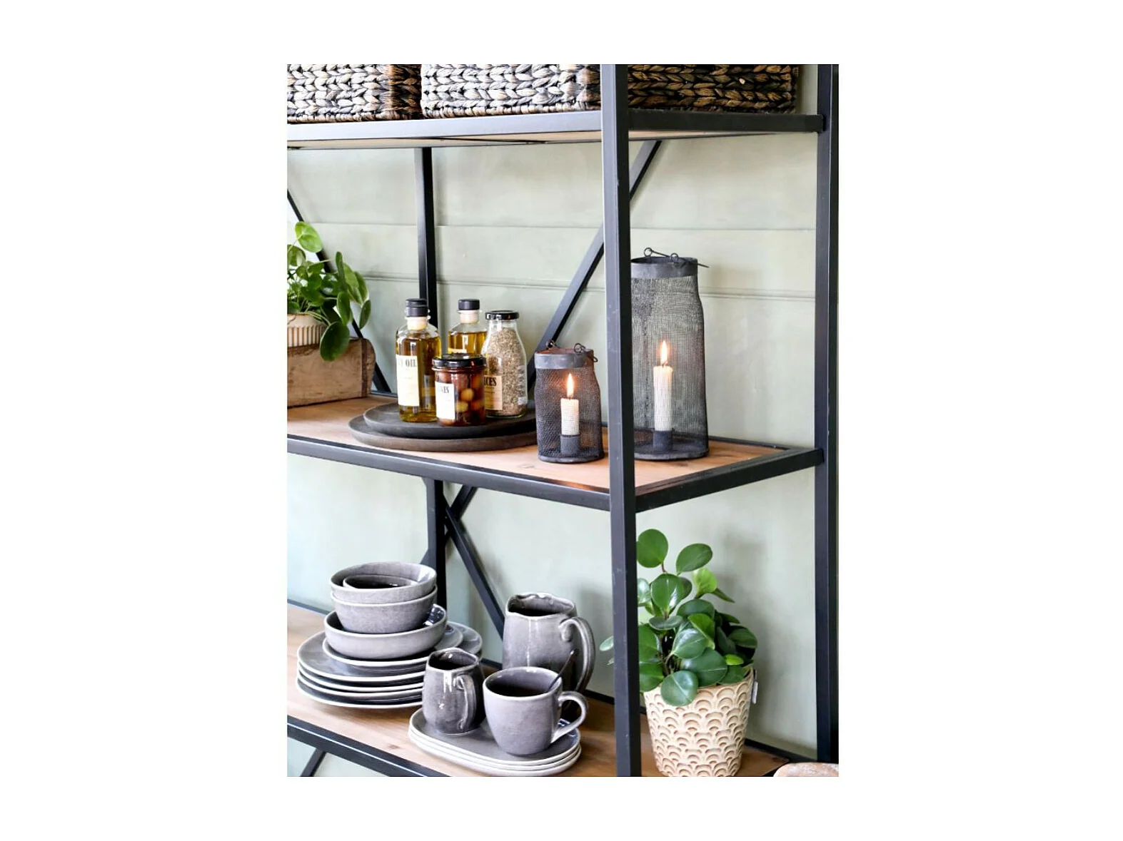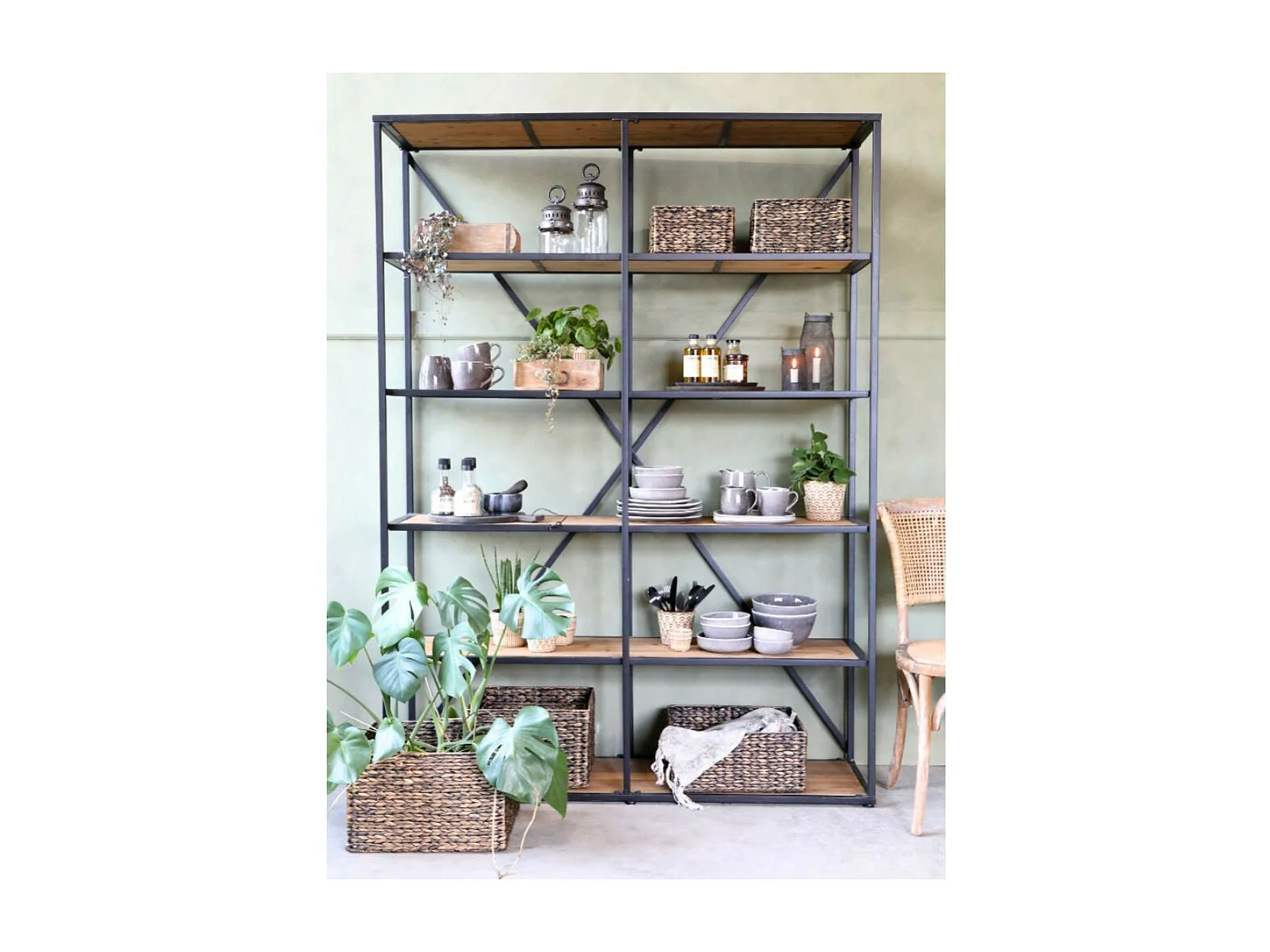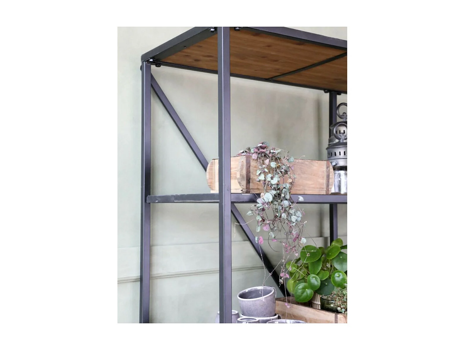 Etagère en bois marron et fer forgé noir antique 145 x 41 x 200 cm