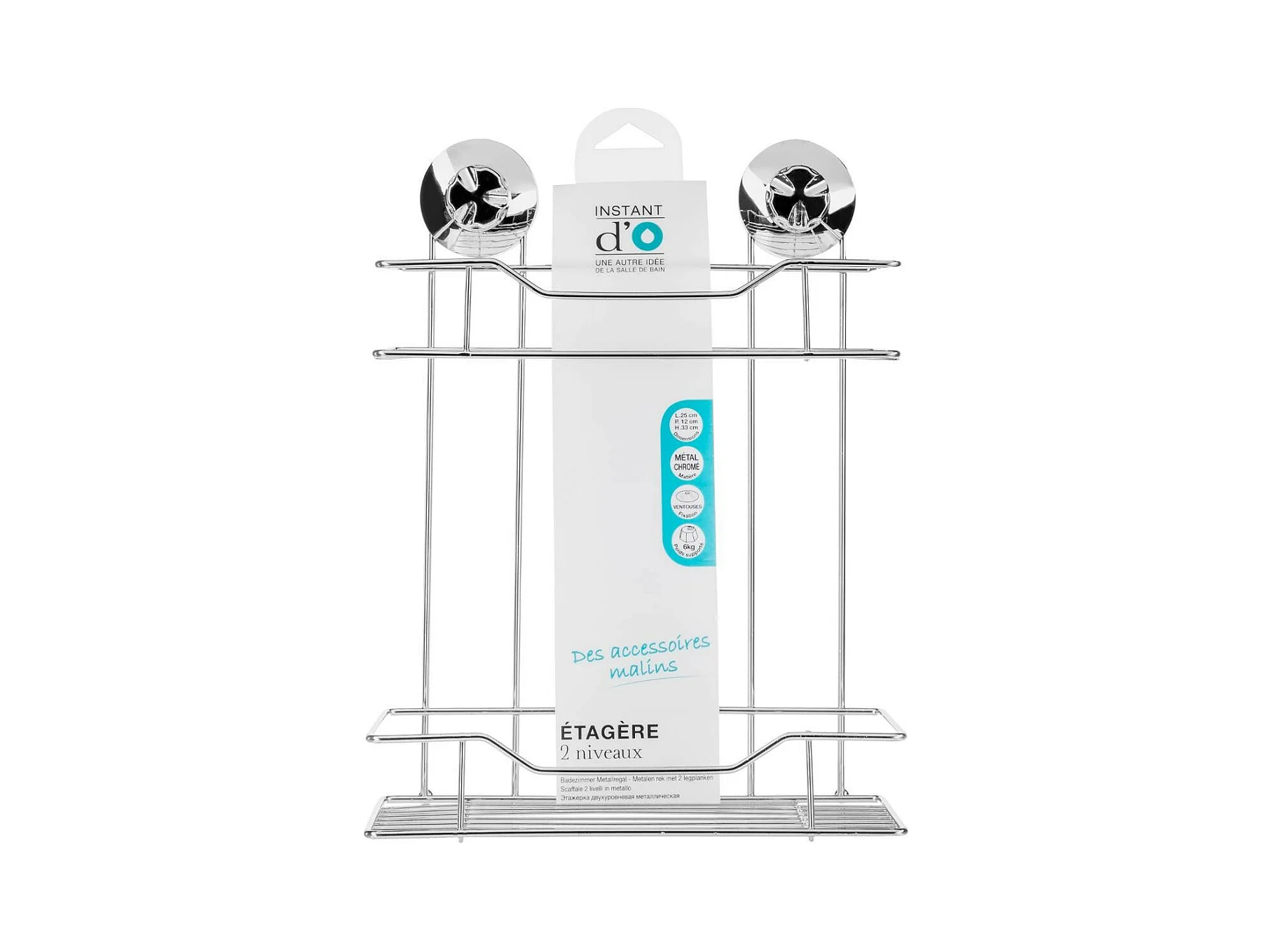 Étagère en Métal à Ventouse "2 Étages" 33cm Argent