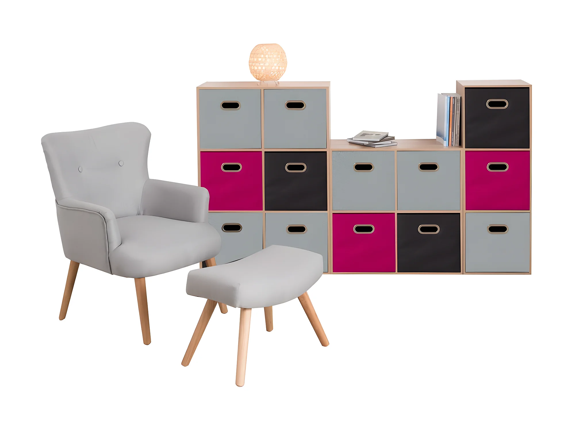 Etagère 4 cases en panneaux de particules naturel - Dim : L.67,6 x P.32 x H.67,6 cm