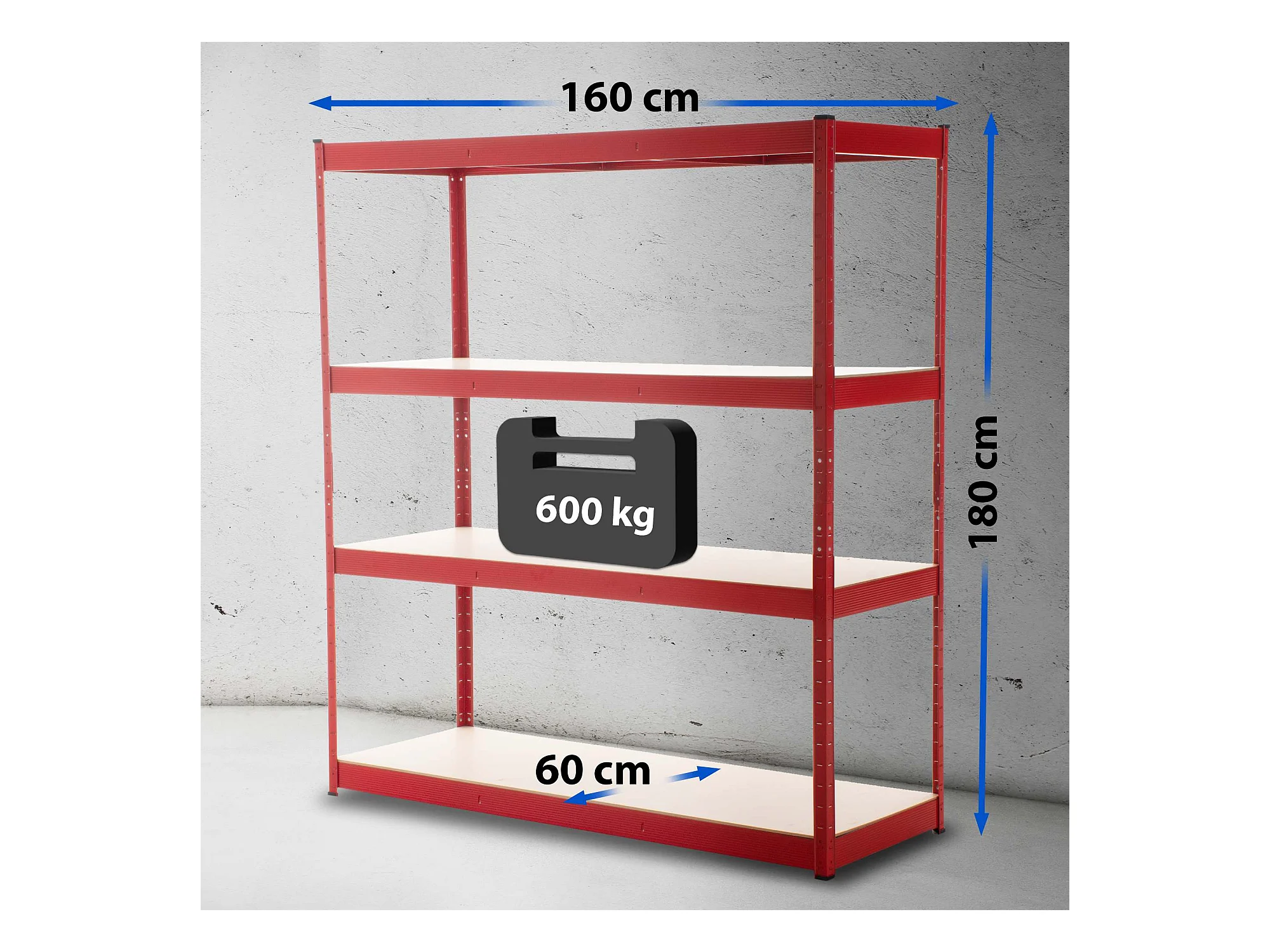 Étagère enfichable - Métal - 160 x 60 x 180cm - Rouge - Schwerlastregal