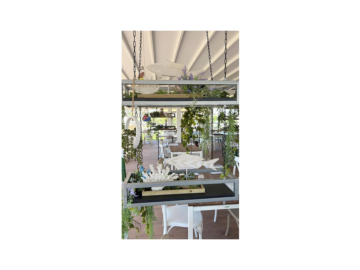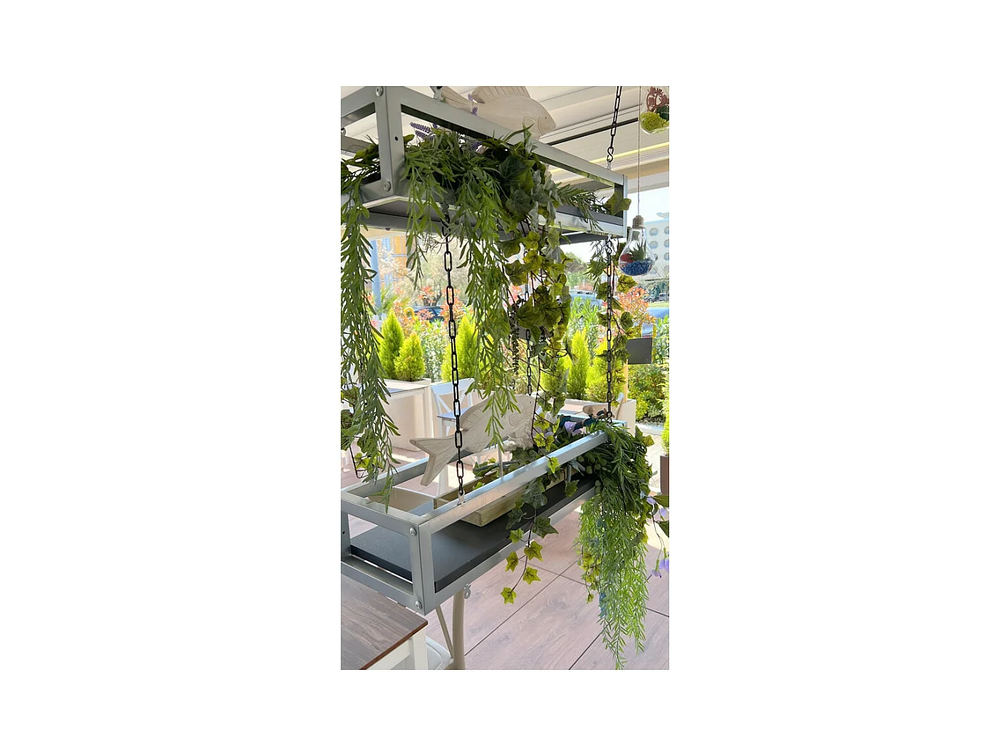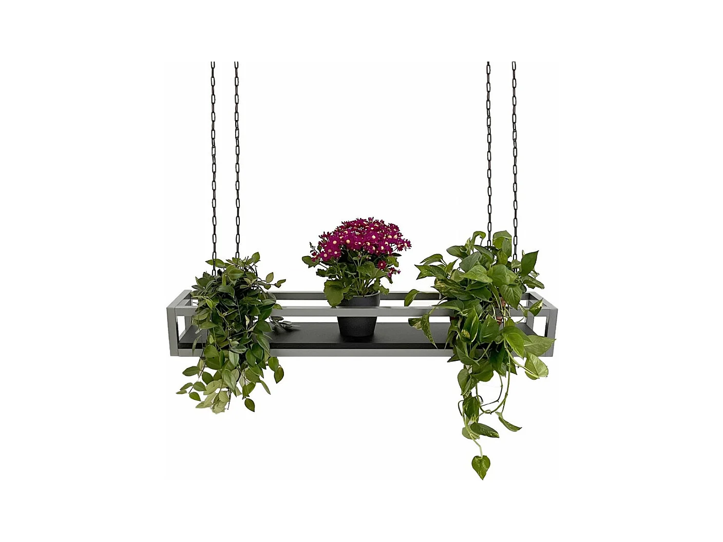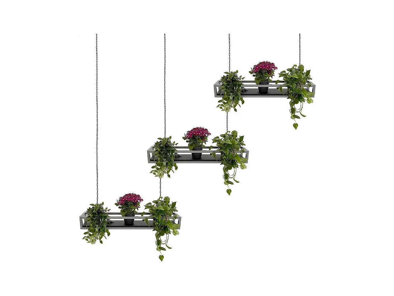 Etagère FLOWERS suspendue au plafond GRIS NOIR longueur 115 cm avec chaines pour jardin vertical fleurs par Yelloo