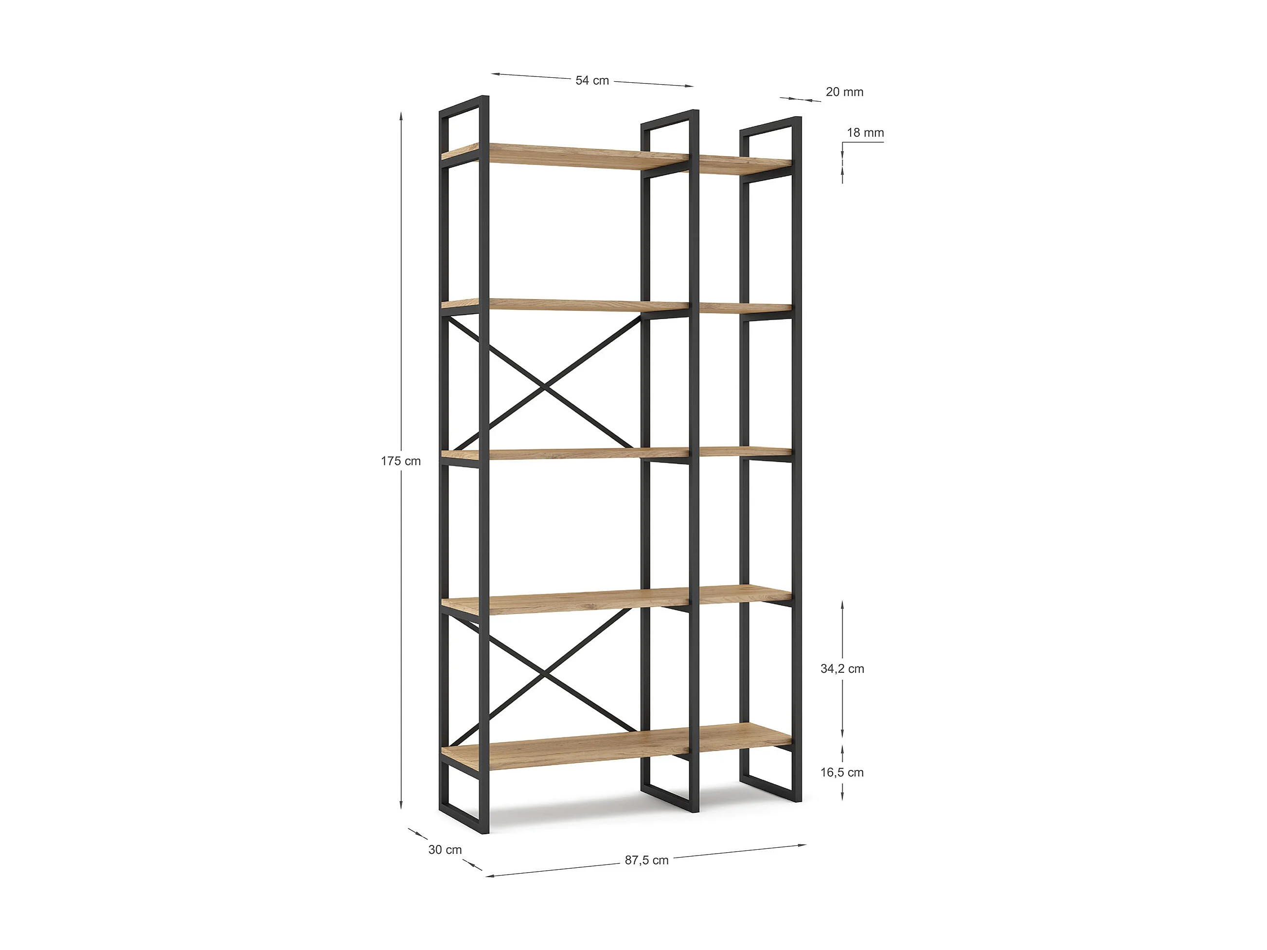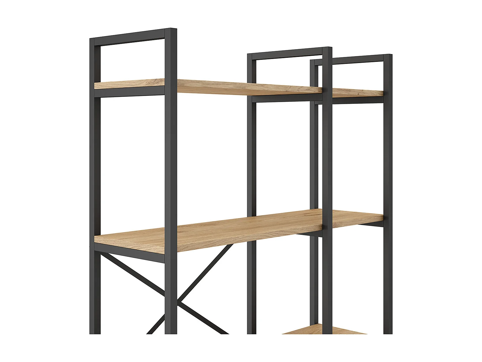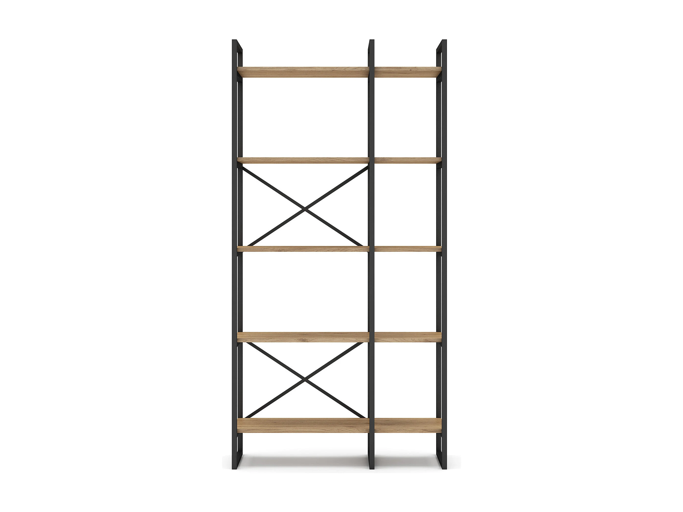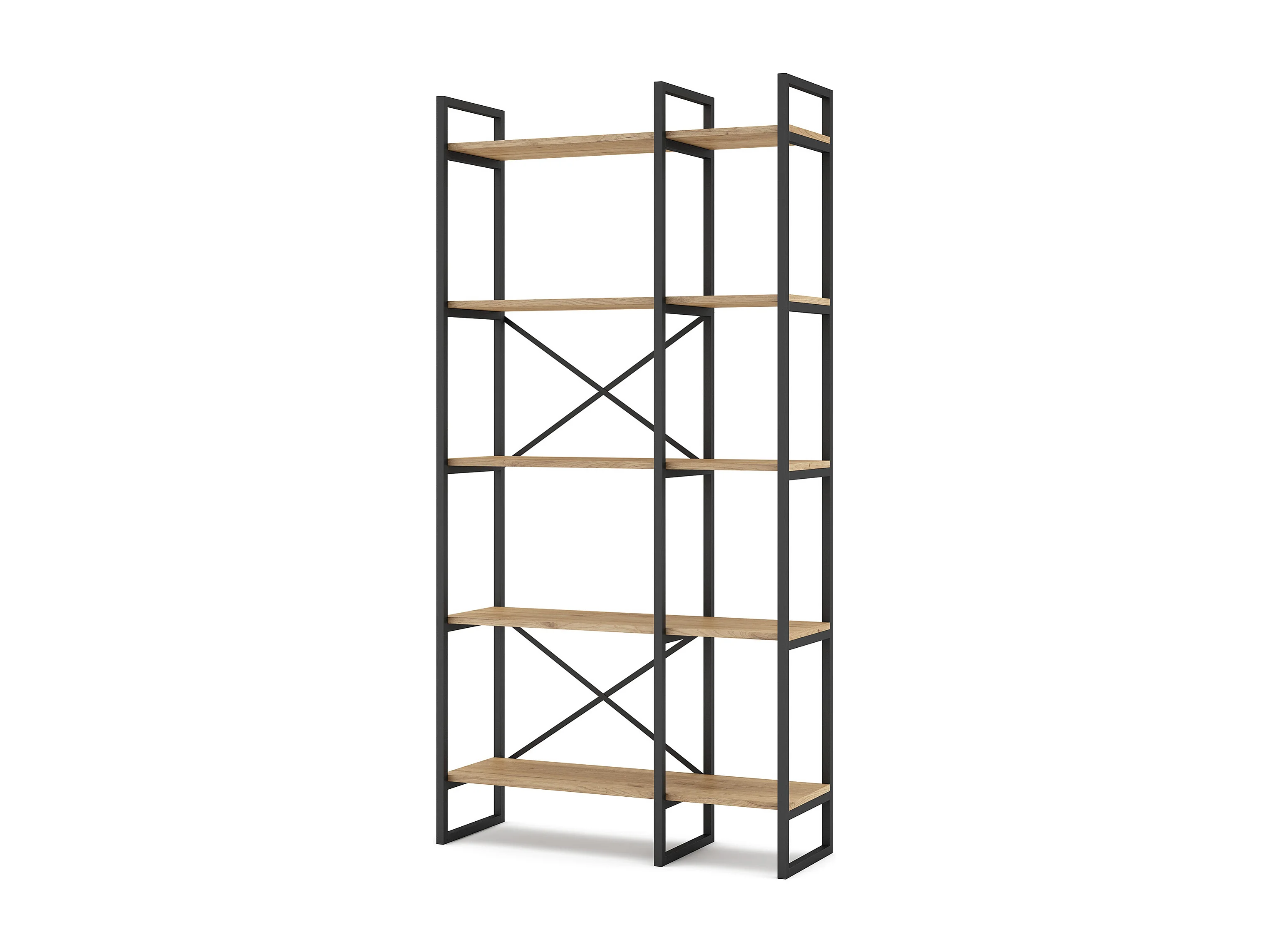 Etagère haute, meuble étagère aspect bois coloris naturel et métal noir - Longueur 87,5 x Profondeur 30 x Hauteur 175 cm